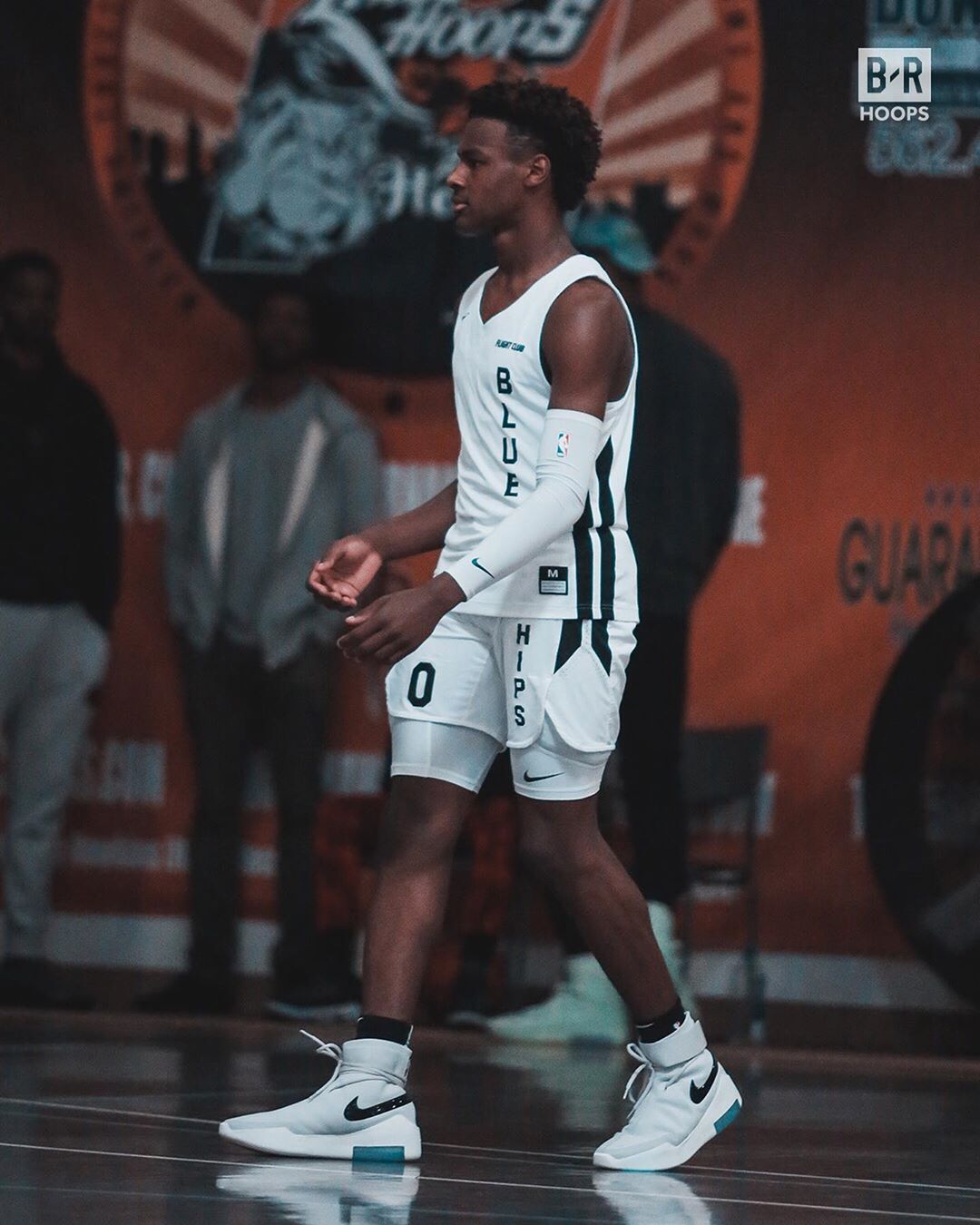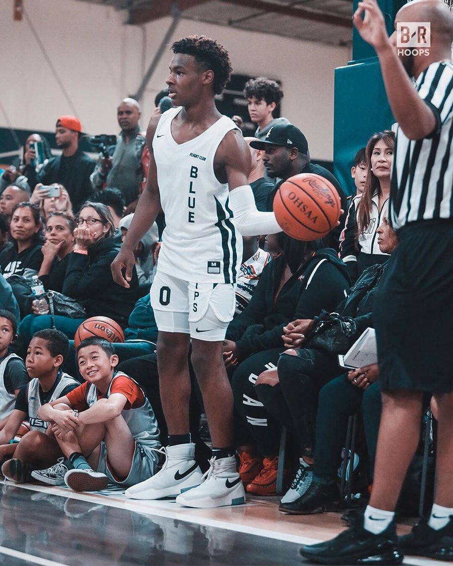 而场上的 Bronny,上脚了一双 Air Shoot Around 白灰配色。