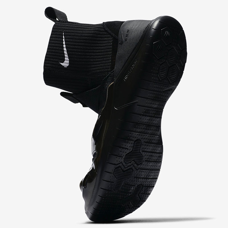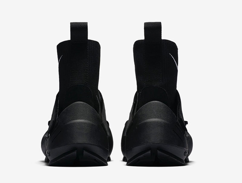 鞋身采用高耸的弹力袜套示人,内侧辅以夸张的 Nike Swoosh 点缀。鞋面边缘则加入额外补强,提升耐用性与支撑力。