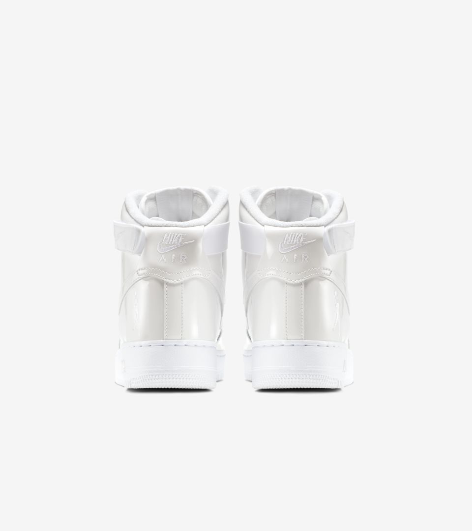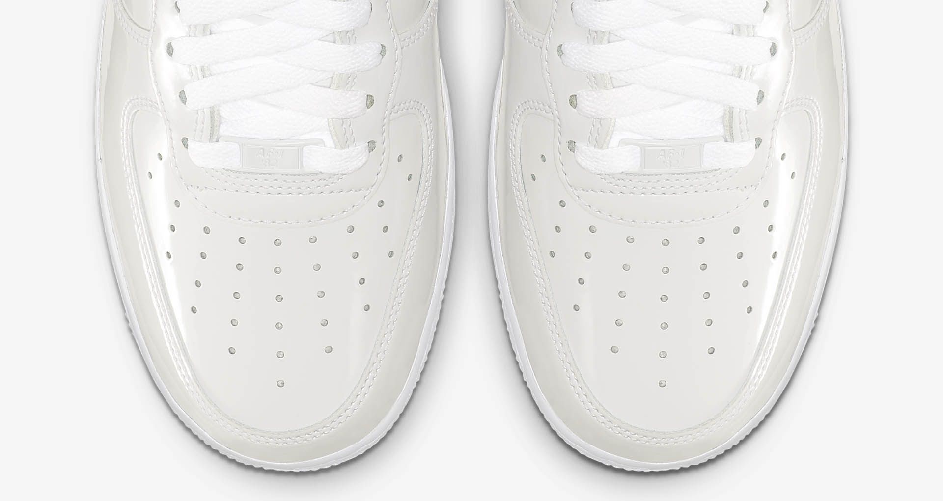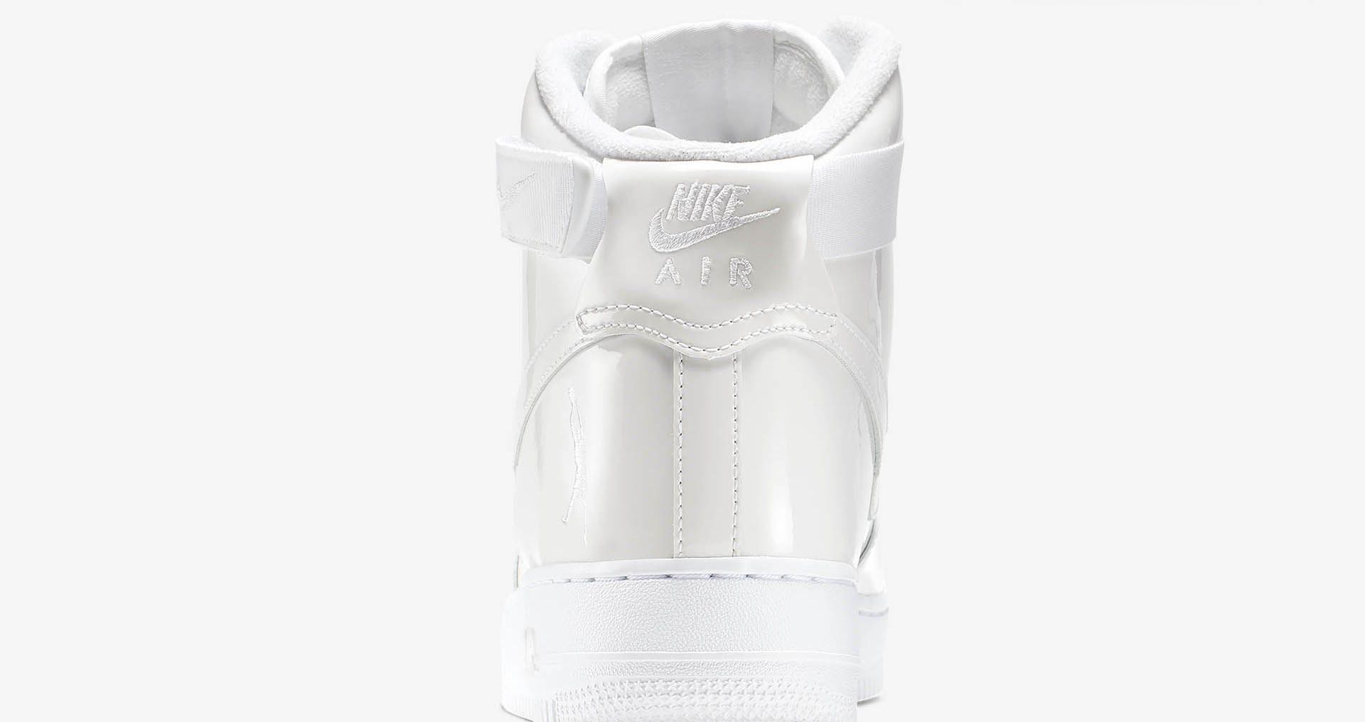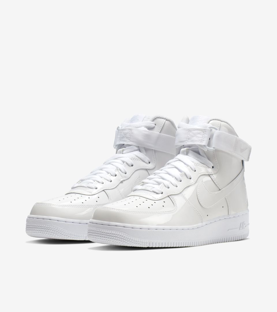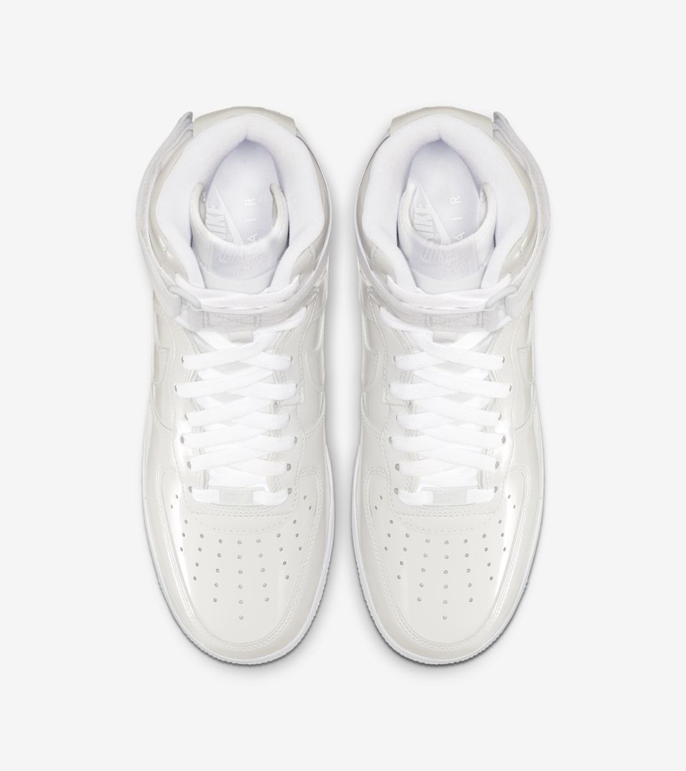 整体以标志性的高帮 Air Force 1 为蓝本,以纯白配色覆盖整个鞋身,尽管配色单一,但漆皮仍能提供超凡的质感,仿佛将时间拉回到 21 世纪初期。