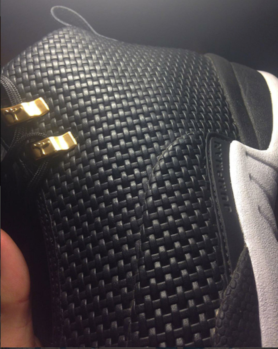 此次的 Air Jordan 12 “15Lab12” 将 Air Jordan 15 最为经典的 Woven 编织鞋面在 Air Jordan 12 鞋身上呈现,将二者完美的结合在一起。