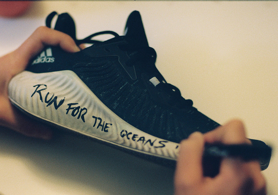 此次以经典跑鞋 adidas Alpha Bounce Beyond 为蓝本设计,采用 100% 可回收再利用材质打造,将环保主题体现得淋漓尽致。