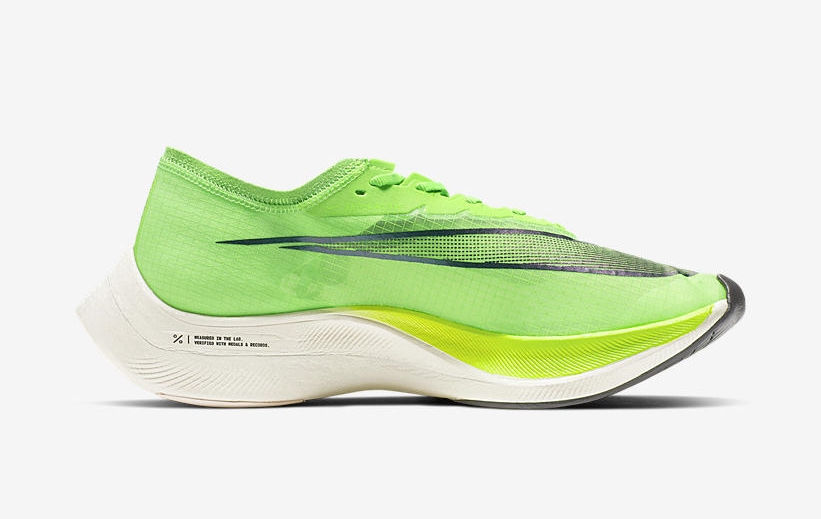 这双 Nike Zoom Vaporfly NEXT% 则是下一代的最顶级 Nike 跑鞋,同样搭载了 ZoomX 缓震泡棉和全掌铲型碳纤维板。