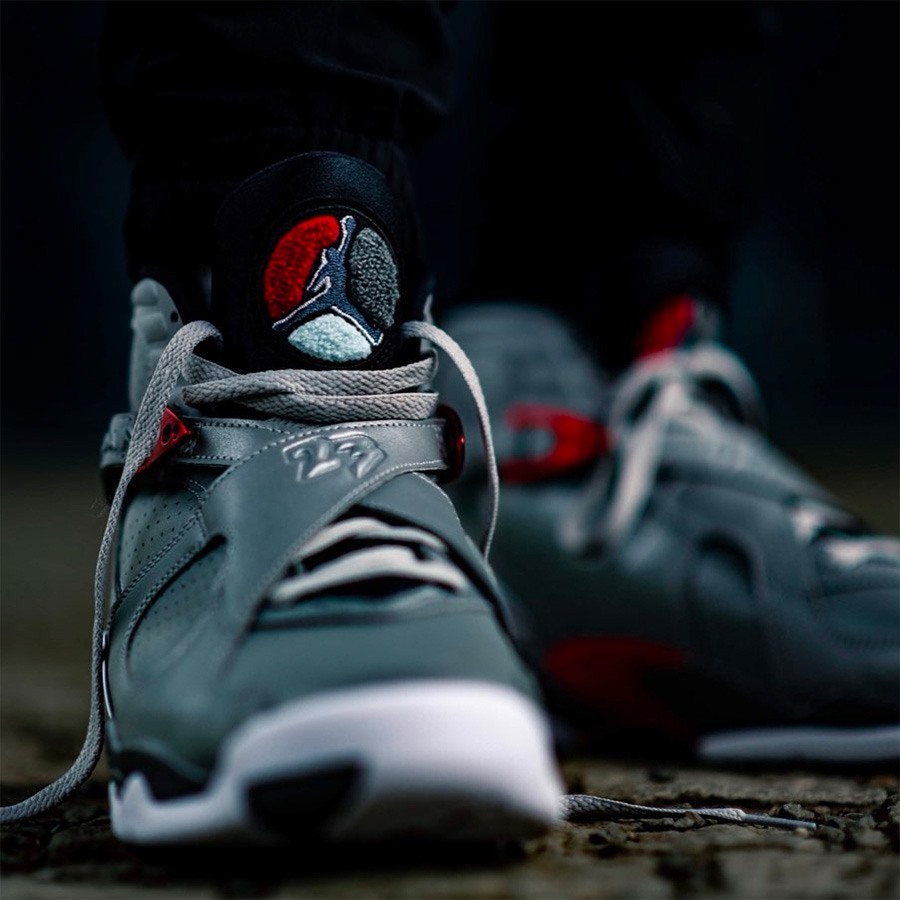 Air Jordan 8 则以标志性的迷彩刷点缀在鞋身,与鞋舌、中底等细节装饰相呼应。