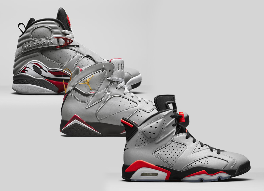 今年 Jordan 为此带来全新系列,将三双鞋的鞋面全部使用 3M 反光元素,目前 Air Jordan 6 和 Air Jordan 8 已经在国内官网释出发售链接。