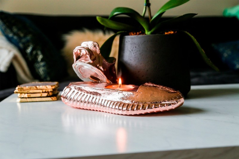 这款作品除了日常摆设外,更能揭开鞋身当做烛台使用。同时购买全新作品时,也将配套附送四个小蜡烛,满满的设计细节给这个作品加分不少。