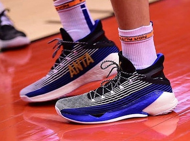 汤神此战上脚蓝白配色 ANTA KT4,进攻效率极高,可惜第四节遗憾负伤。