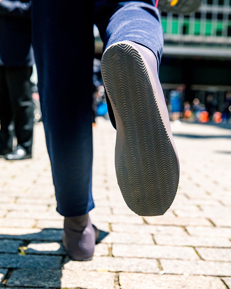 袜套式的鞋身上仅有简单的线条点缀,搭载薄薄的一层鞋底,穿在脚上就像是一双比较厚的袜子,让人好奇脚感到底如何。