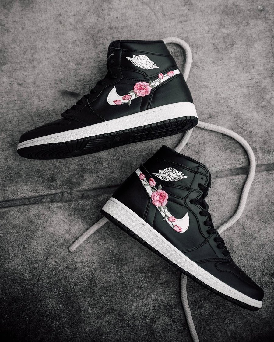 花卉元素在球鞋定制中格外常见,简简单单的一双黑白配色的 Air Jordan 1 一样能吸引别人的目光!