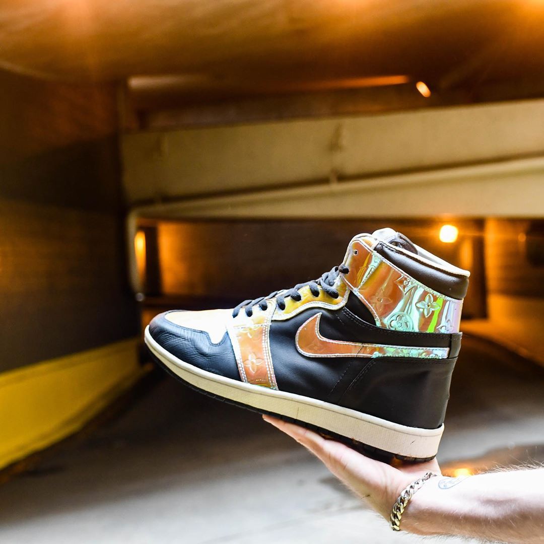 说到奢侈品主题定制,那绝对少不了 LV,下面这双 LV x Air Jordan 1 看完之后真的有点想收入囊中!