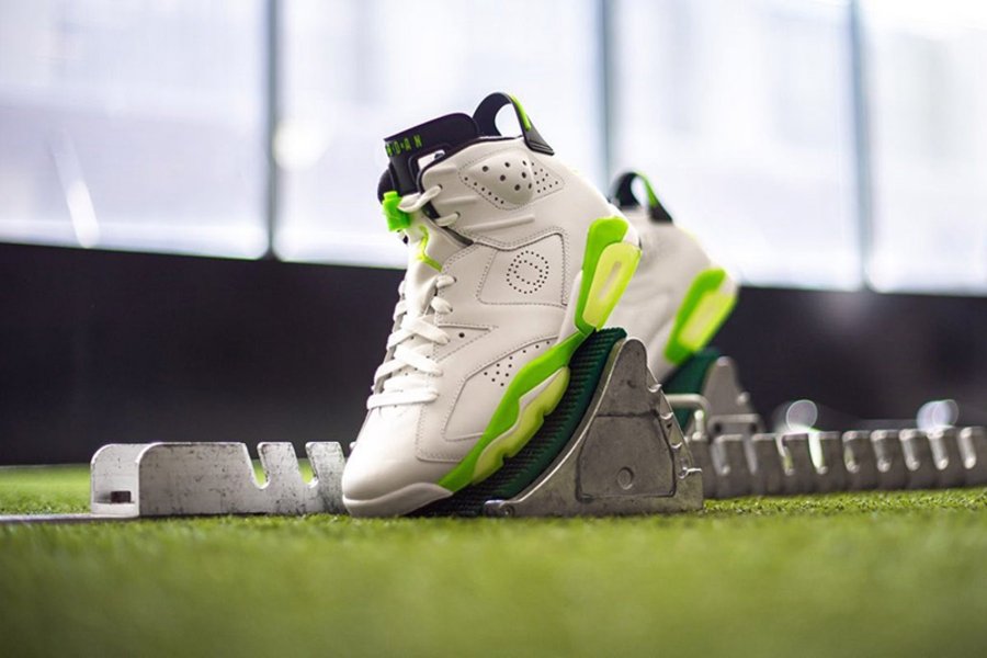 之前曝光的两款 Air Jordan 6 PE “Oregon Ducks” 近期又有最新实物美图释出。