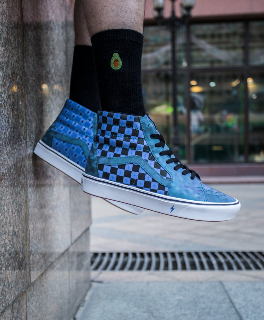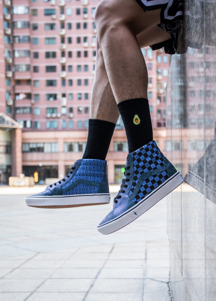 鞋款方面选用了经典 Sk8-Hi 鞋型,同时加持最新 ComfyCush 鞋底科技,带来更为舒适的脚感。