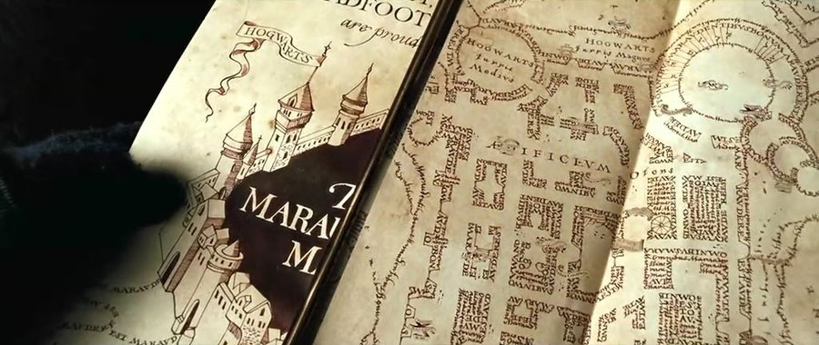 用咒语开启地图的魔法后,便会浮现出一张霍格沃茨的地图,还有霍格沃茨里每个人所在的位置。