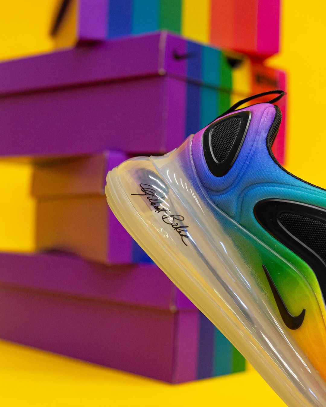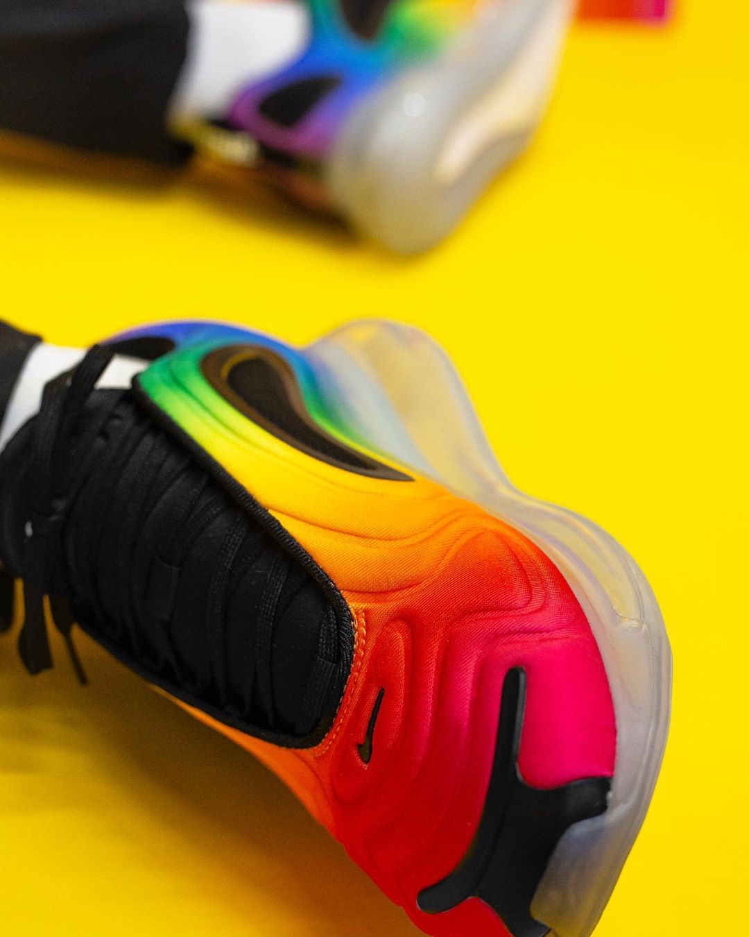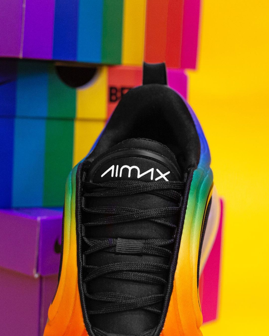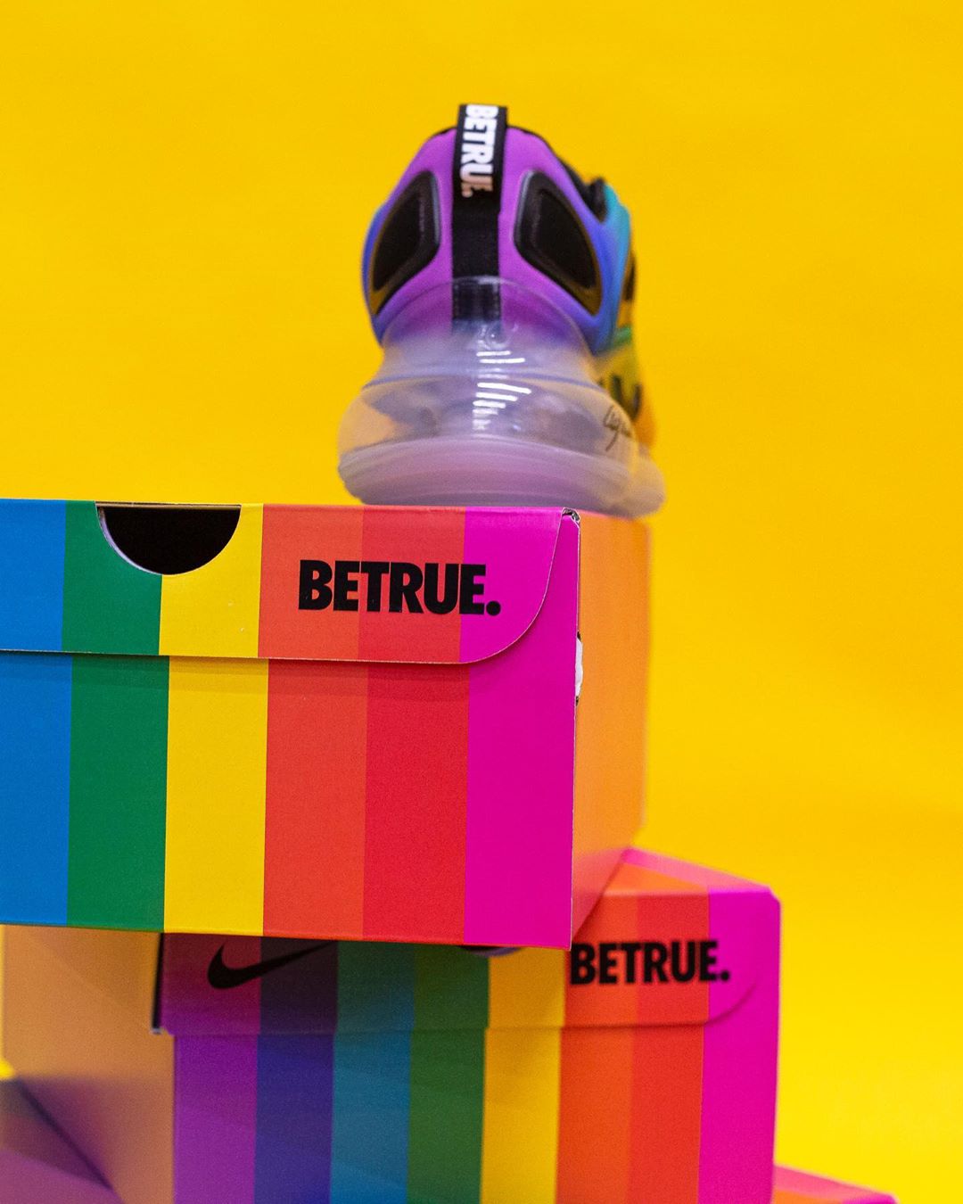 彩虹装扮的 BETRUE 系列今年又如期登场。要说今年新品中最引人注目的,莫过于 Air Max 720。 海外现已发售,带来一组最新实物美图。 采用全鞋面彩虹渐变设计,极为风骚亮眼,搭配黑色细节和透明气垫点缀。堪称今年 BETRUE 系列中最为夸张的一款。 Air Max 720 出色的脚感,让这款鞋非常适合日常压马路穿着。 海外已经迎来发售,国内目前尚未有预告释出,我们将持续关注并第一时间带来报道。 pic via:lemkus_