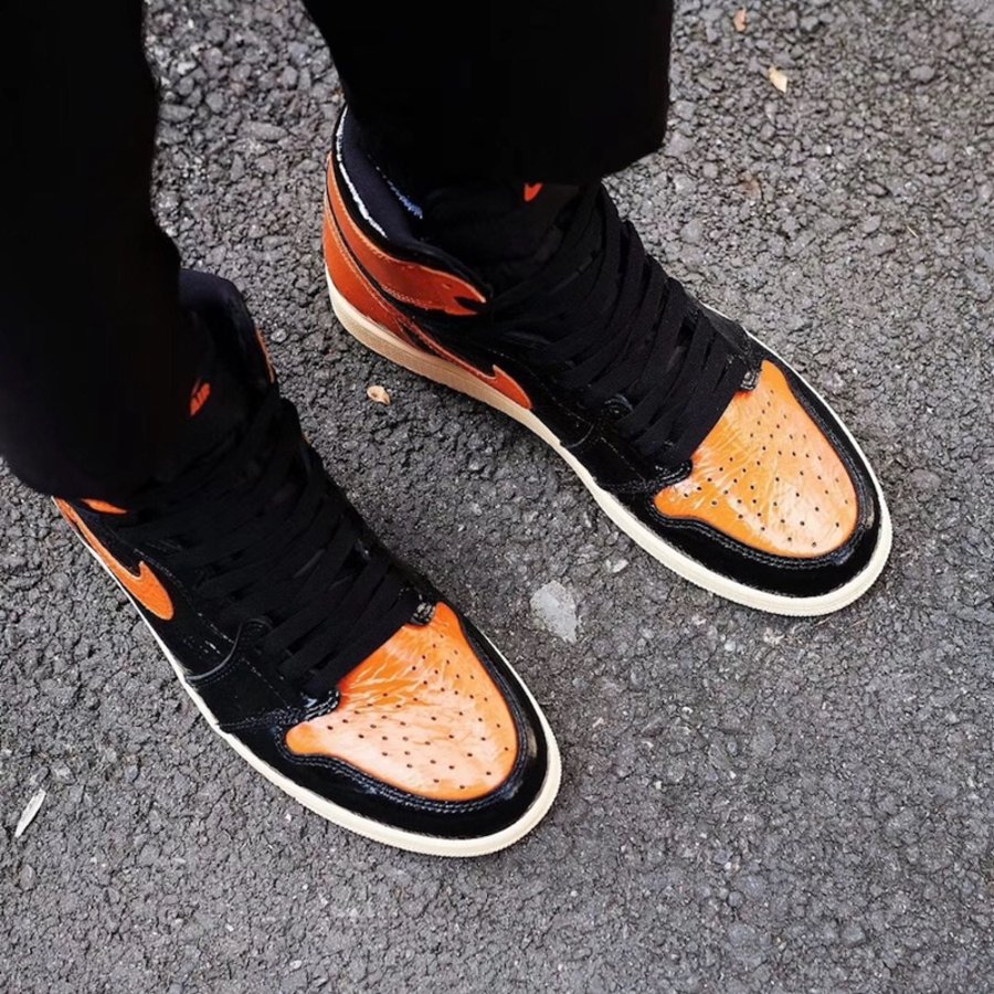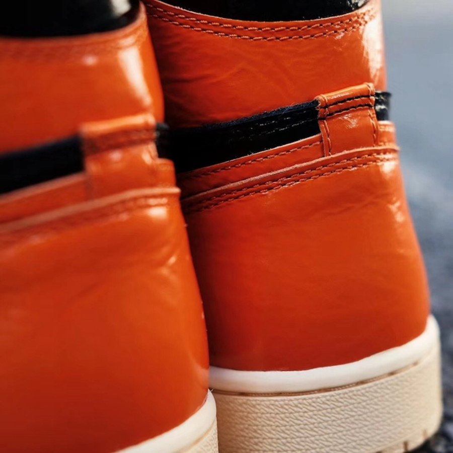 橙色主题的扣碎配色可谓 Air Jordan 1 中的新贵,虽然不是元年配色,但此前的黑、白两个版本以及丝绸扣碎都有极佳的市场反响。