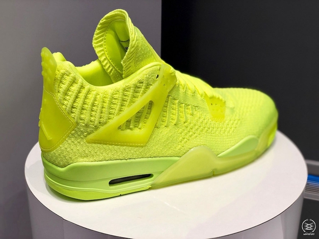 通过 Flyknit 编织构建的多重纹理,再现了 Air Jordan 4 丰富的鞋身层次。鞋身原有标志性的篮网鞋带扣、鞋舌 Jumpman 方标以及鞋跟部位,均采用果冻装扮的半透明 TPU 打造,最后辅以同样色系的水晶大底收尾。鲜明大胆的配色无疑是夏日久违的活力释放!