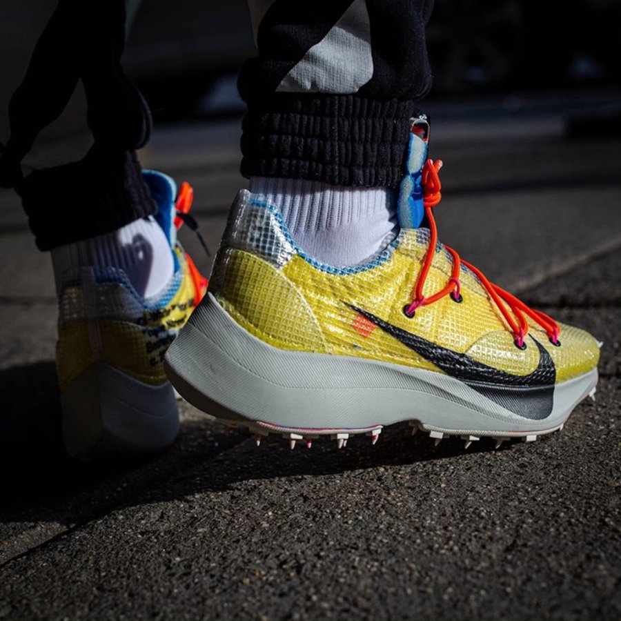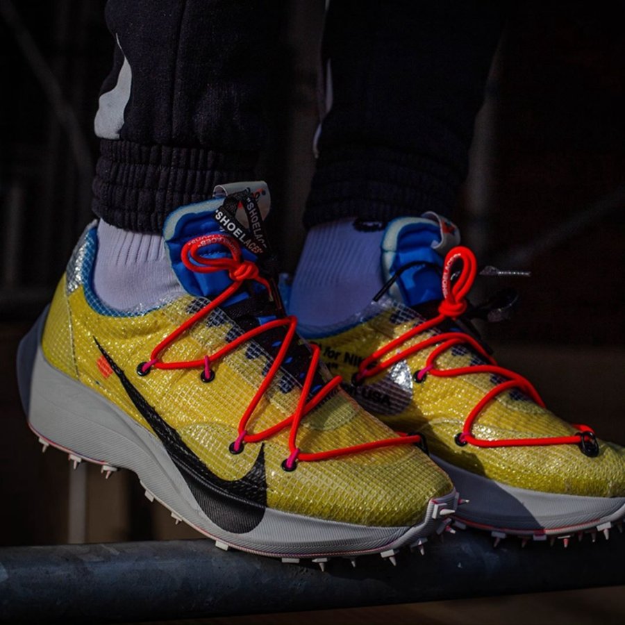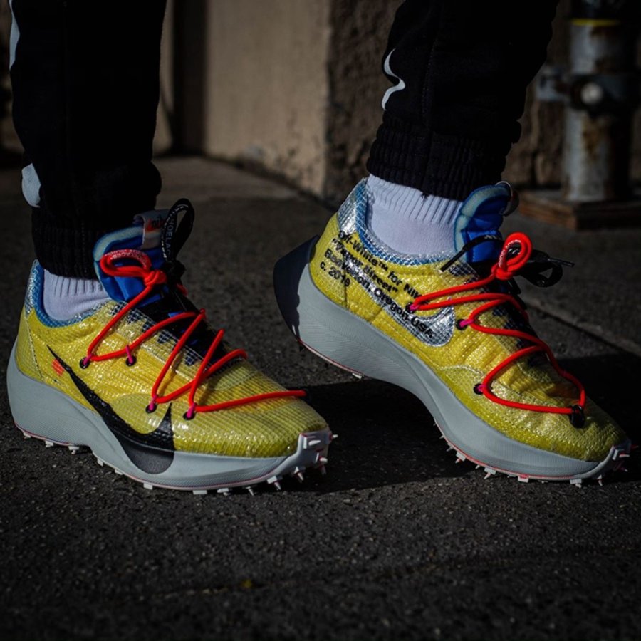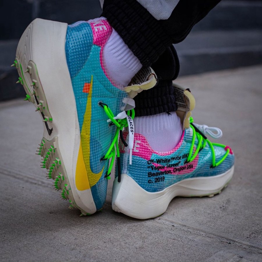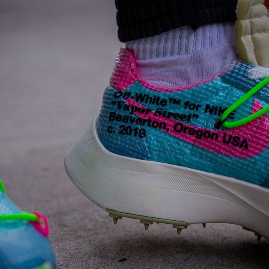 继去年 OFF-WHITE 2019 春夏秀场亮相后,OFF-WHITE x Nike Vapor Street 作为即将发售的「田径」主题一员,迎来三款全新配色上脚美图,让我们近距离一睹真容!