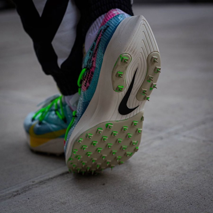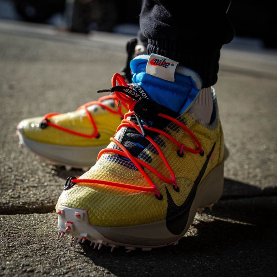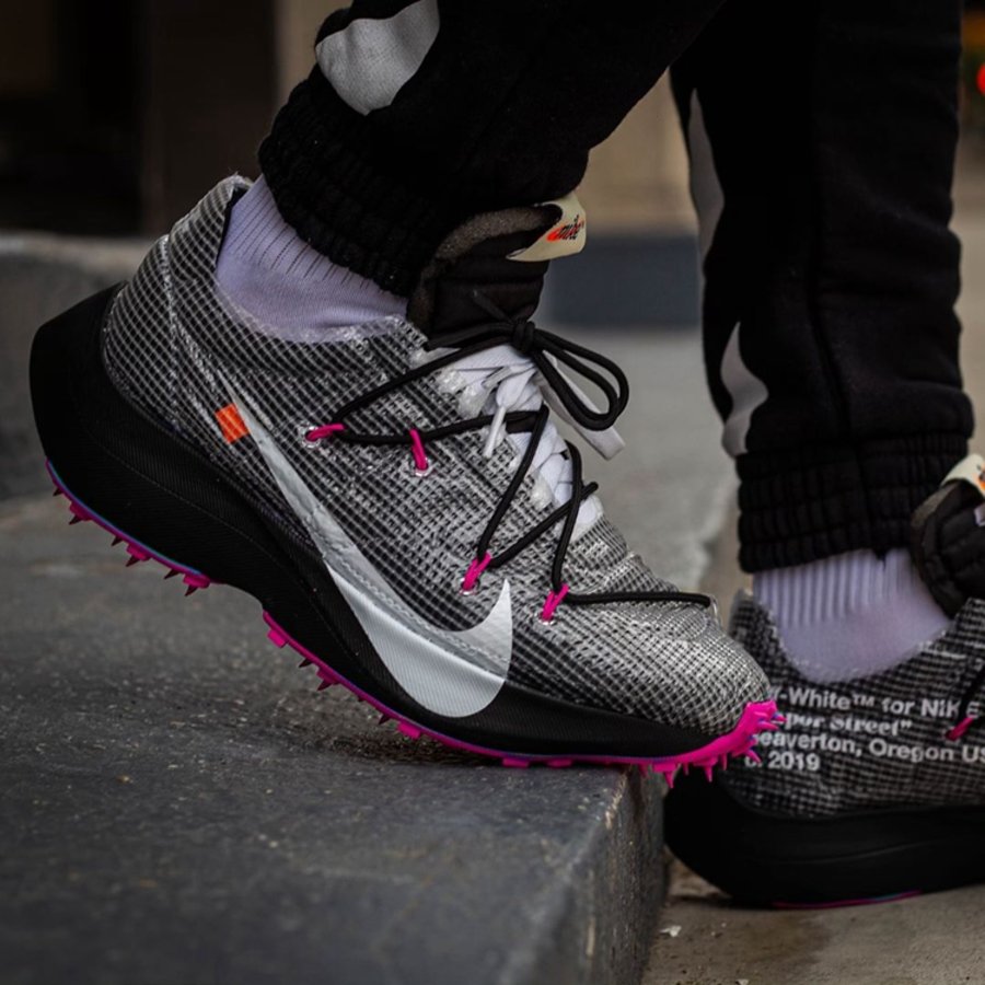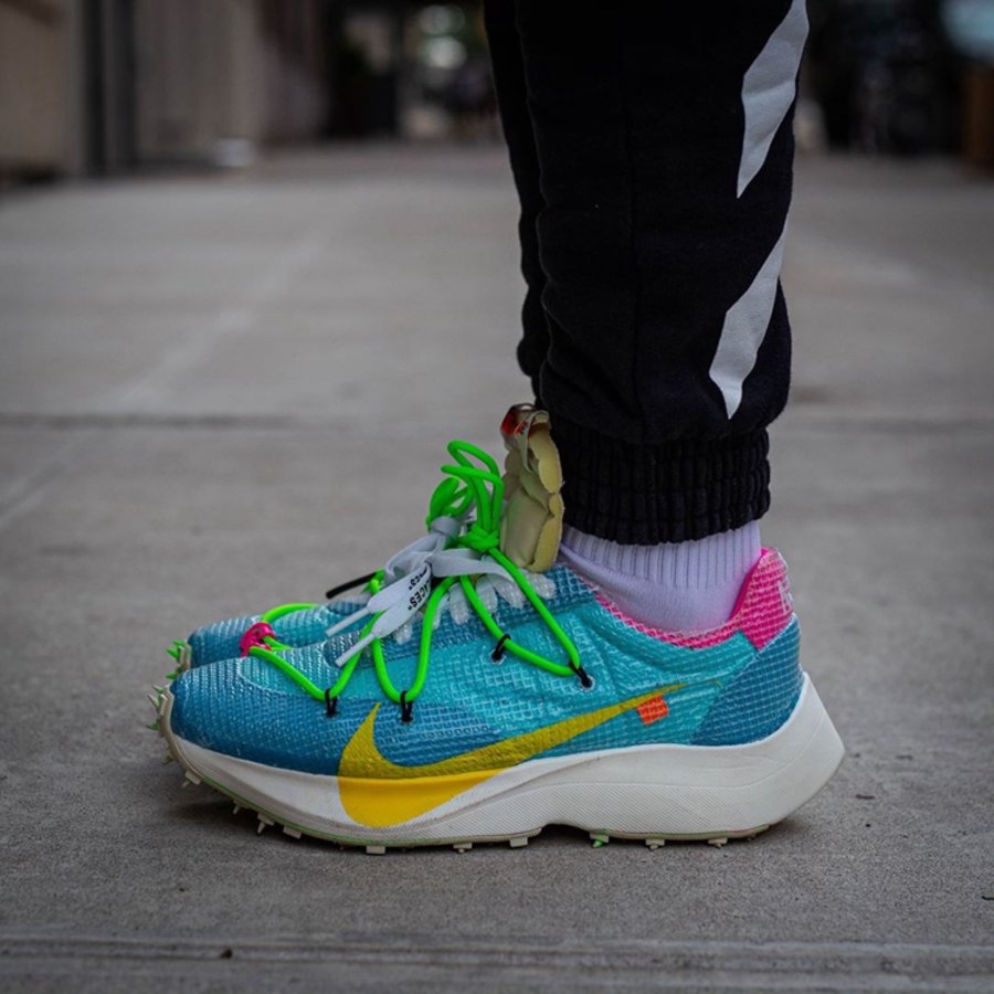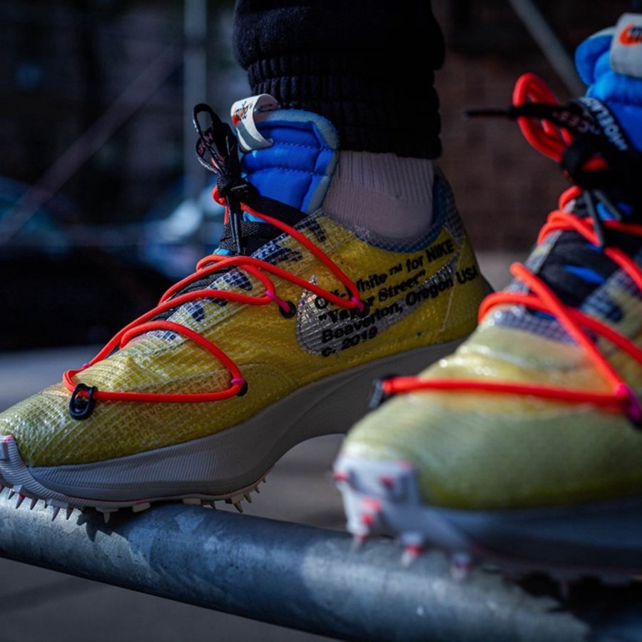 继去年 OFF-WHITE 2019 春夏秀场亮相后,OFF-WHITE x Nike Vapor Street 作为即将发售的「田径」主题一员,迎来三款全新配色上脚美图,让我们近距离一睹真容!