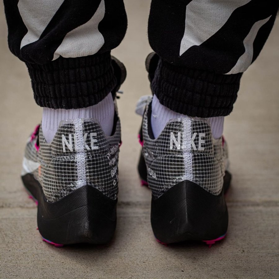 除了鞋面使用蝉翼网布包裹外,夸张醒目的 Nike Swoosh 更增添一分视觉冲击!标志性的 OFF-WHITE 字体依然出现在鞋身内侧,暴露的海绵鞋舌依然散发着强烈的解构气息,而橡胶材质的钉状外底,独特的鞋带系统,更彰显着「田径」主题的专属身份!