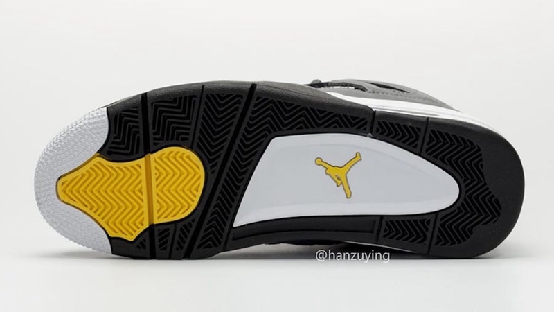 鞋舌部分黄色 Flight 字样与鞋面呈现出强烈的对比,不仅起到点睛作用,也为这双冷酷风格的球鞋增添几分活力。