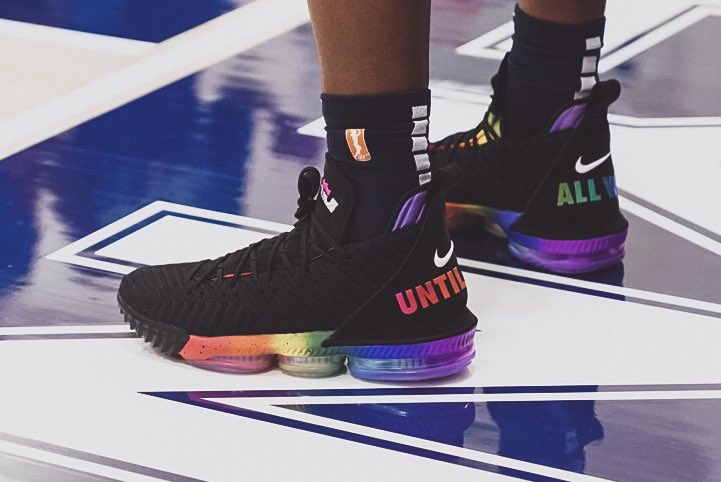 继欧文与杜兰特的最新战靴在昨日纷纷亮相 BETRUE 配色后,詹姆斯的 LeBron 16 “BETRUE” 近日也由 WNBA 球员上脚,出现在赛场!