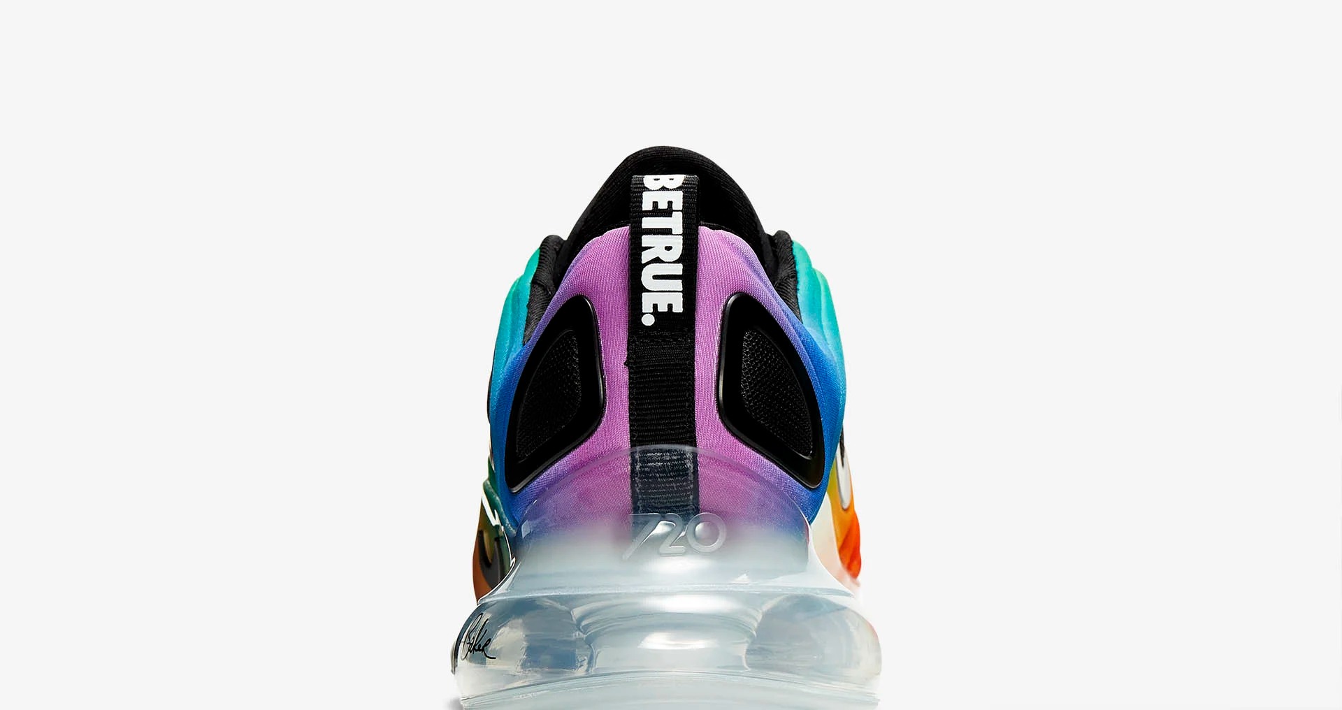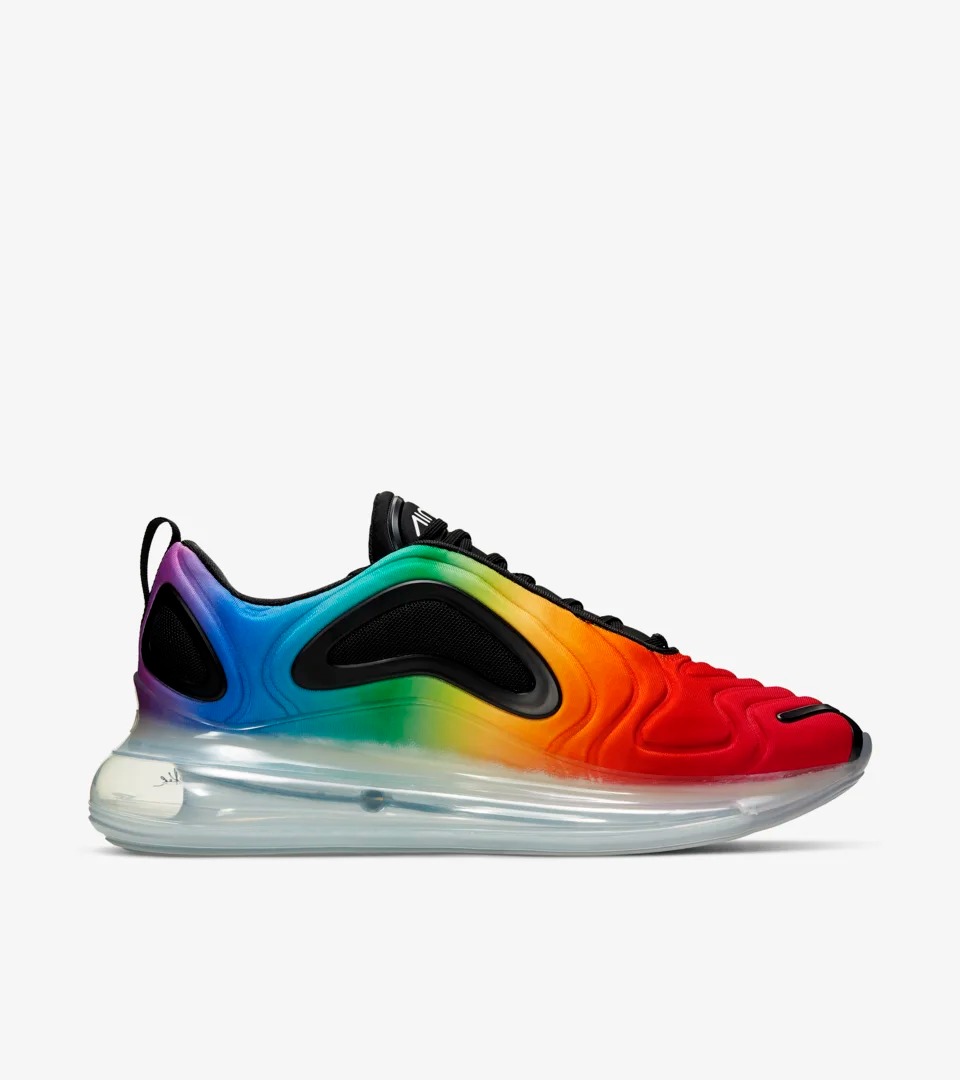 延续 Air Max 720 夸张且极具辨识的造型,搭配全鞋身彩虹渐变设计,风骚亮眼,相信在夏日的穿搭中一定会相当出彩。