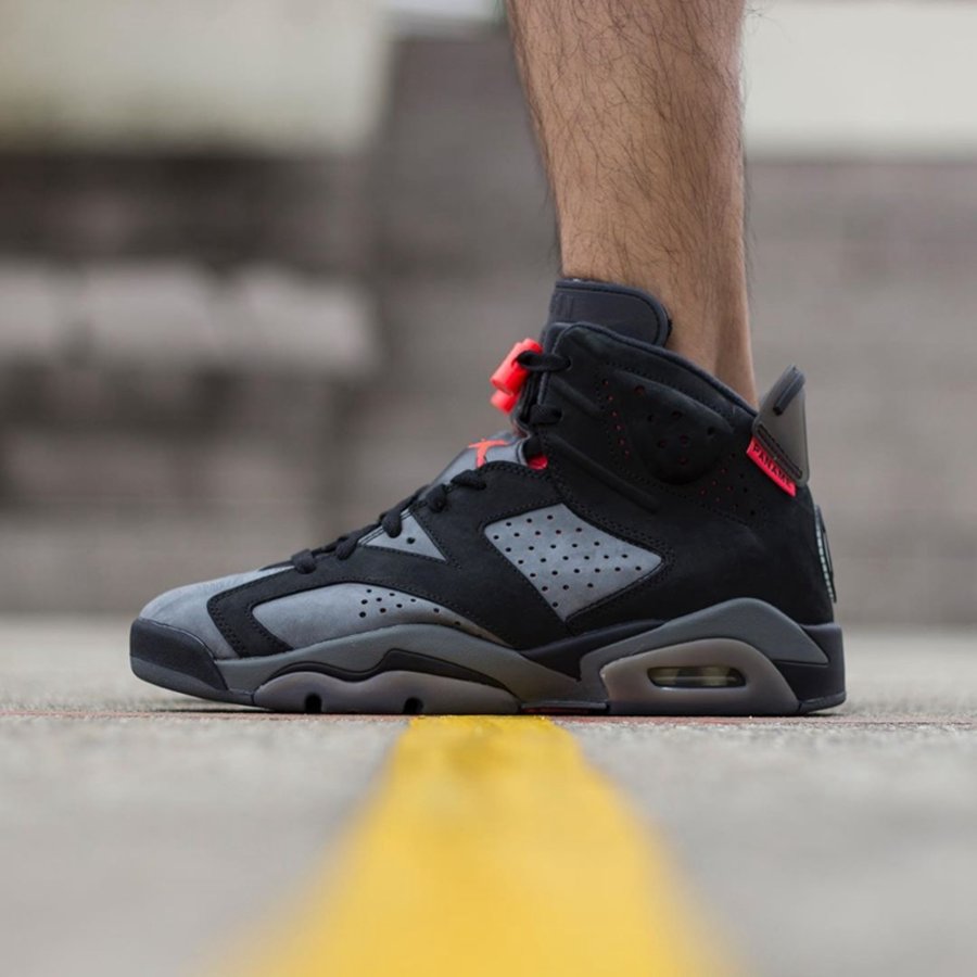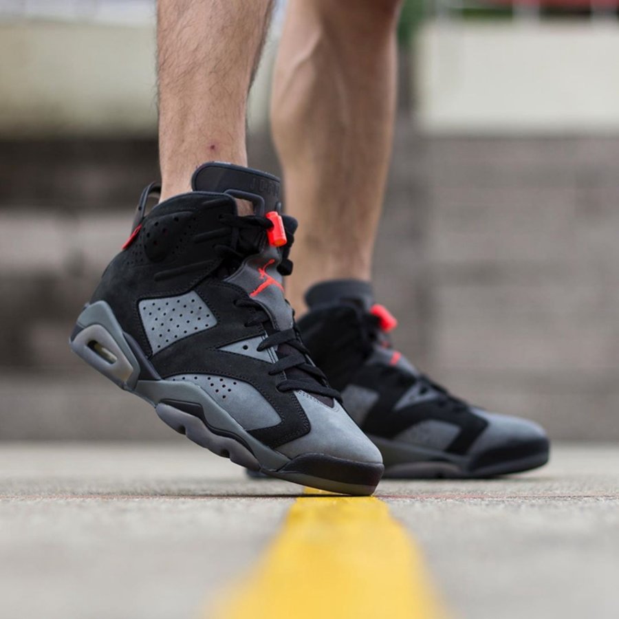 采用磨砂质感的黑灰双色打造鞋面,后跟鞋提外侧红色标签绣有「PANAM」字样,鞋跟处 Paris 环绕的 Jumpman Logo 特别采用半透明材质打造,搭配熏黑鞋提与中底细节,彰显独特的联名身份。