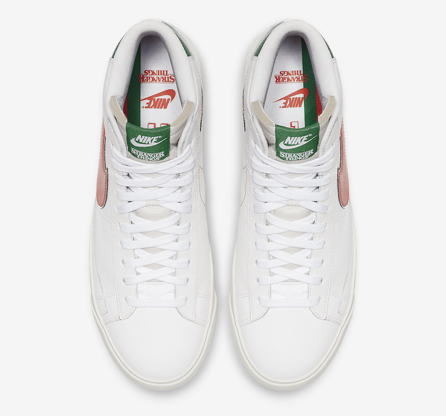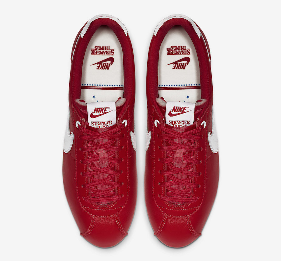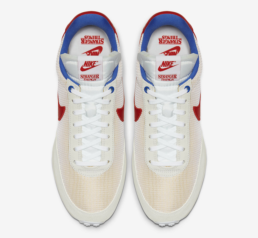 另一主题则是以美国国旗配色为灵感,使用经典的红蓝白呈现,鞋舌上都点缀有《Stranger Things》的 Logo。