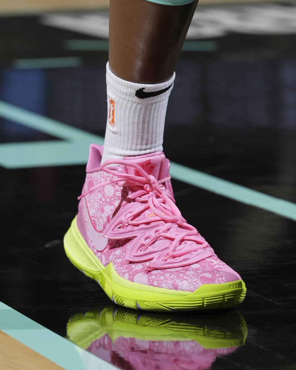 在近期的 WNBA 女篮比赛中,出现了一款全新配色的 Kyrie 5。