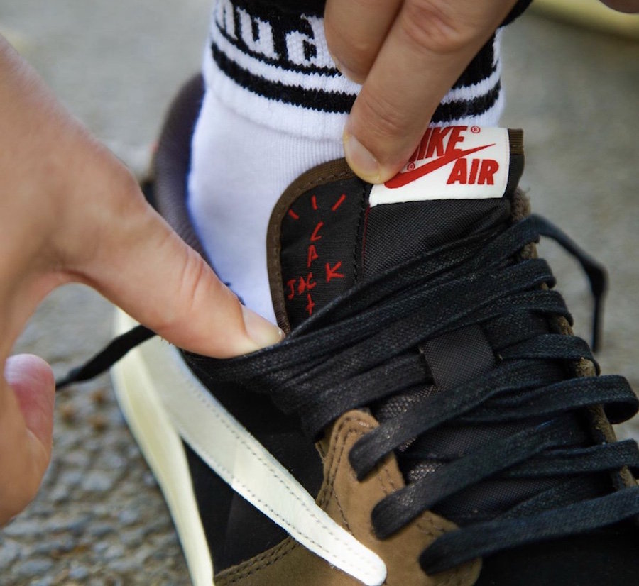 一只鞋垫印有 Travis Scott 名字的反向字体,搭配鬼脸图案,另一只印有 “Cactus Jack” 厂牌和 Jordan Brand 的 Logo,彰显了这双鞋的特殊,如此多的细节,让这双联名鞋显得诚意满满。