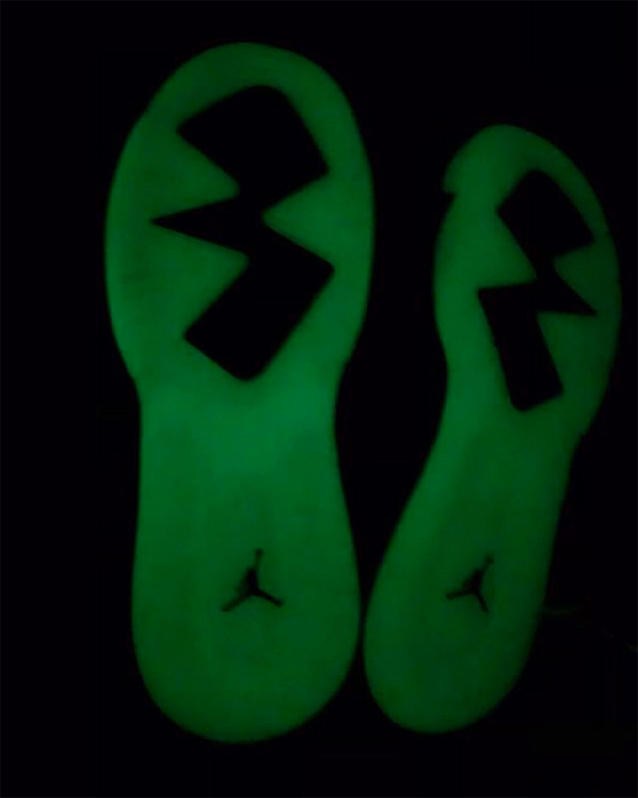 眼前的这双 Jordan Mars 270 “Glow in The Dark” 以黑绿装扮呈现,夜光绿的外底部分带有夜光效果,为其加分不少!