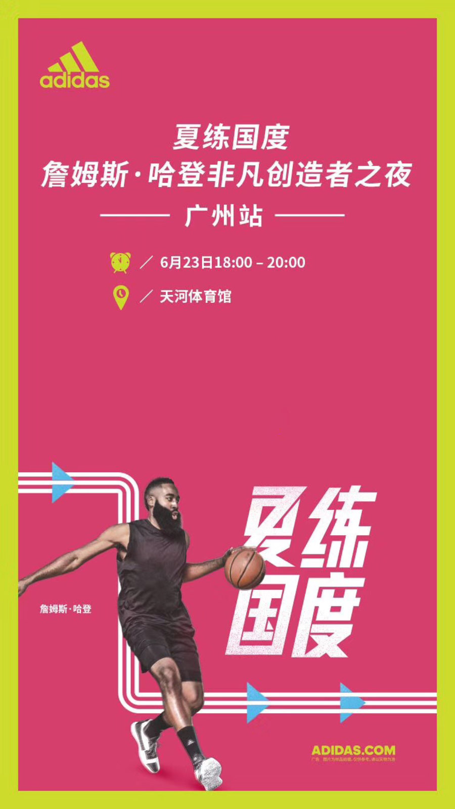 此次哈登中国行,将于 6 月 22 日率先来到北京,在北京工业大学奥林匹克体育馆与球迷们见面,随后于 6 月 23 日抵达广州,空降广州天河体育馆!
