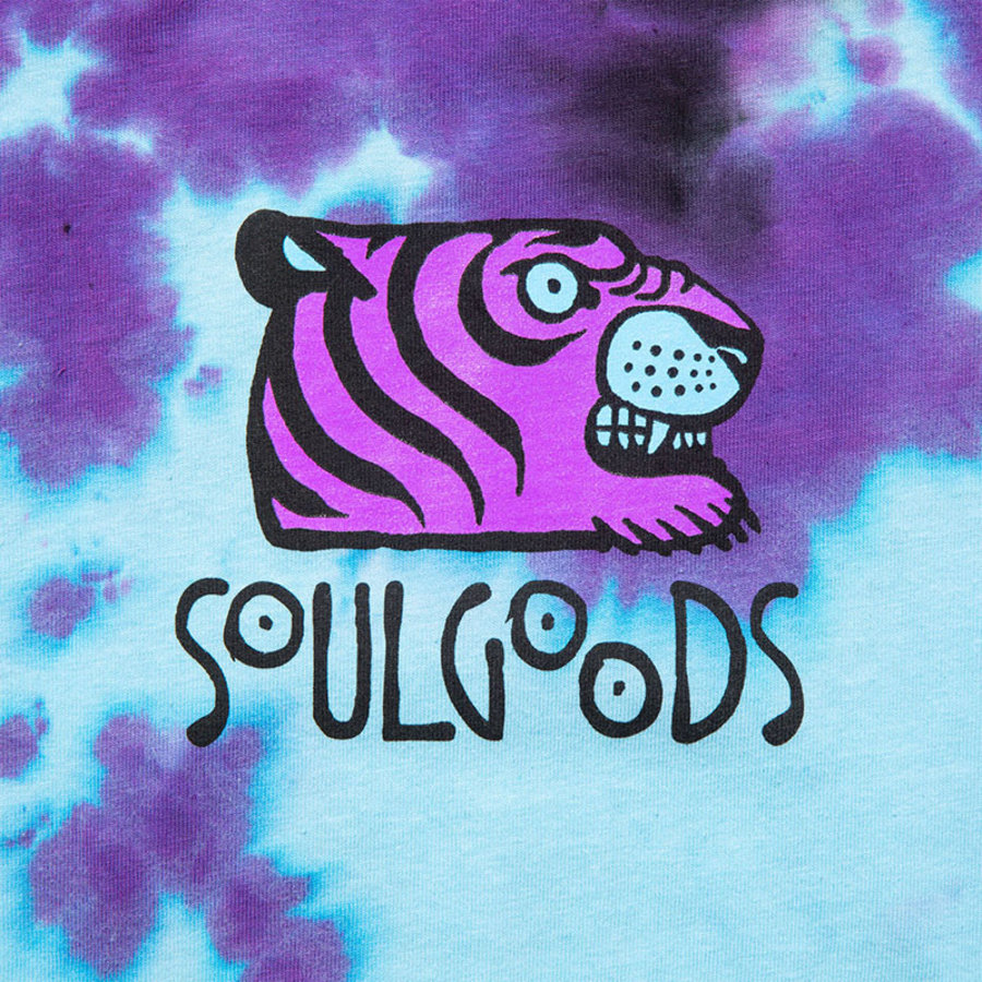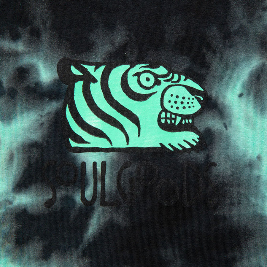 采用大胆蓝黑紫及黑绿撞色,营造宛如迷幻摇滚氛围般的存在。胸口虎头更是 SOULGOODS 的一大招牌元素,本次也得以保留!