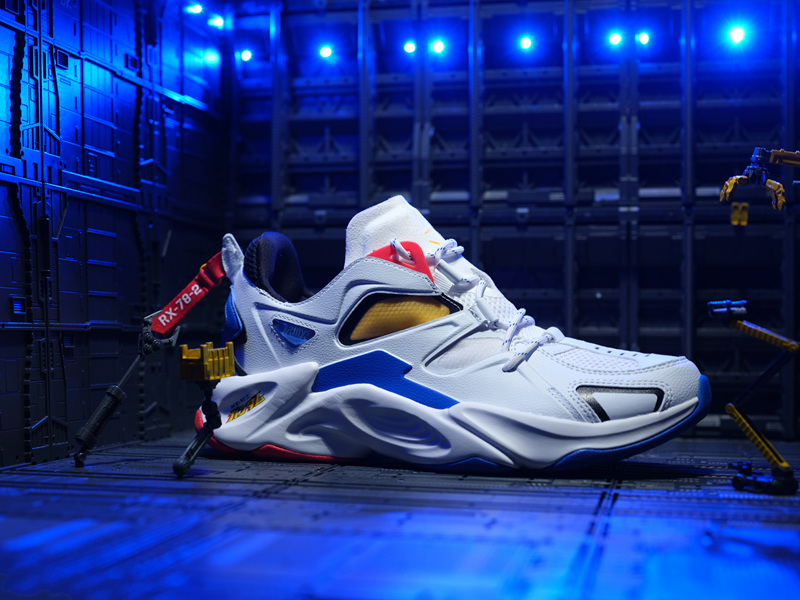 除了分别有三双鞋外,还有 T 恤、高达徽章、限定专属卡片及行李牌等联名周边,构成独特的套装礼盒。