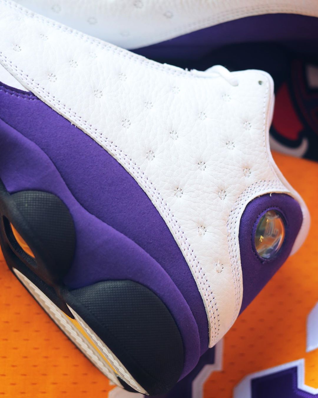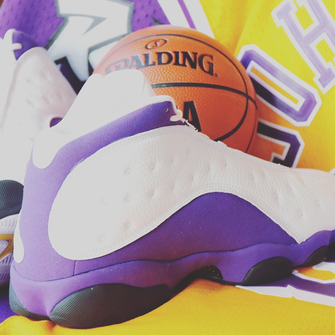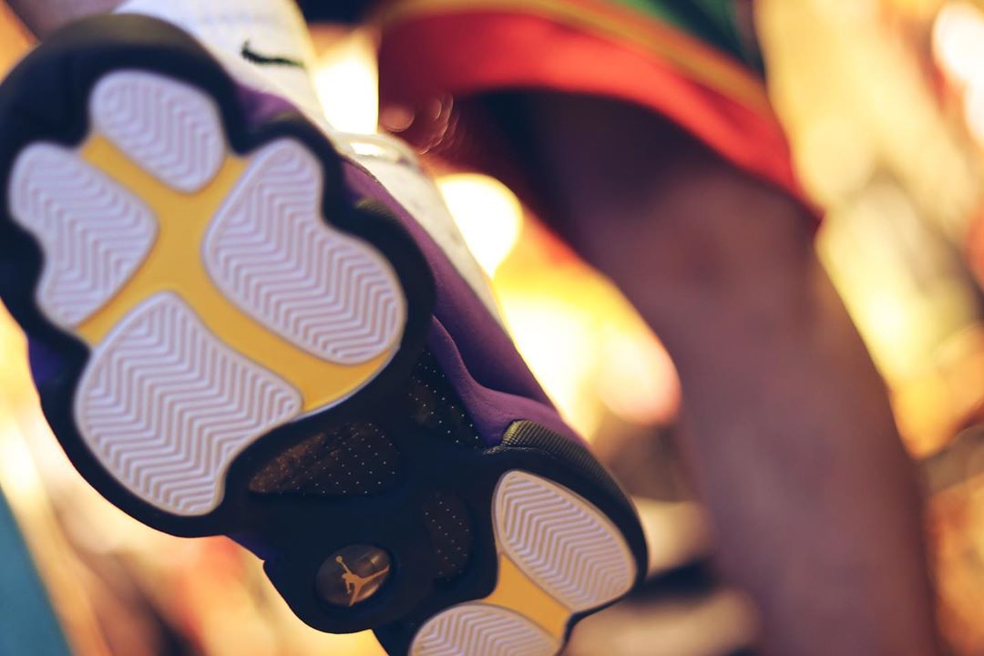 巧的是,独特的湖人配色 Air Jordan 13 “Lakers” 近日再度曝光。