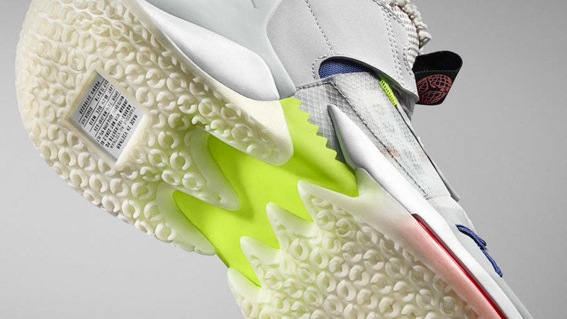 整体外观延续 Jordan Why Not Zer0.2,鞋身侧面采用透明蝉翼网布材质打造,在重量方面有所减轻。并在鞋带前段加入外露飞线设计,相较普通版本设计更加大胆。