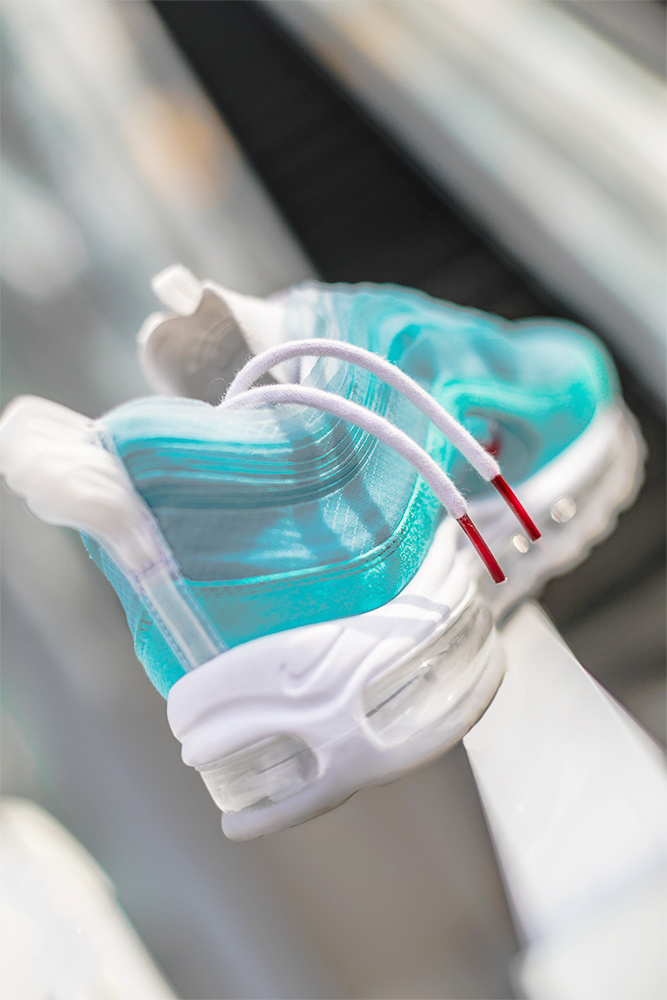 以 Air Max 95 为原型,将标志性的鞋身波纹轮廓以解构的形式分层,形成做旧的外翻样式,颇有几分 上海万花筒的层叠质感。