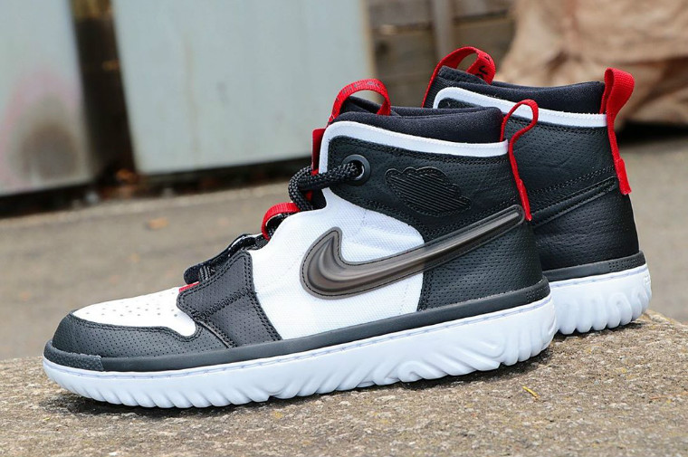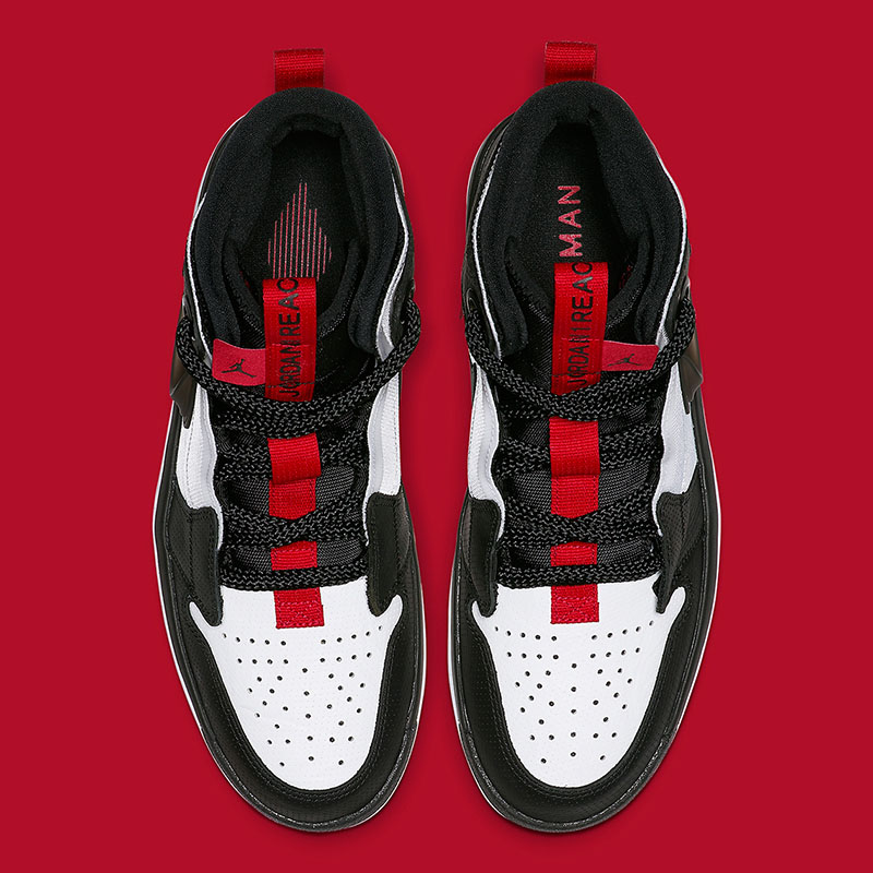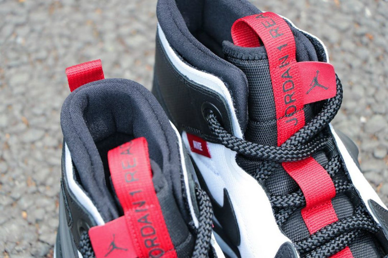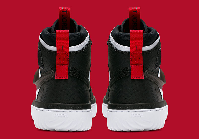 内侧 Swoosh 依然保留 OG 的皮革装扮,红色鞋提贯穿鞋舌与后跟,并注明 Air Jordan 1 React 字样,彰显升级版本的专属身份!