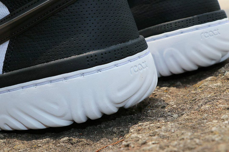 打孔皮革与尼龙材质构建鞋身,搭配立体造型的外侧 Swoosh,最后辅以贯穿足底的 React 大底收尾。