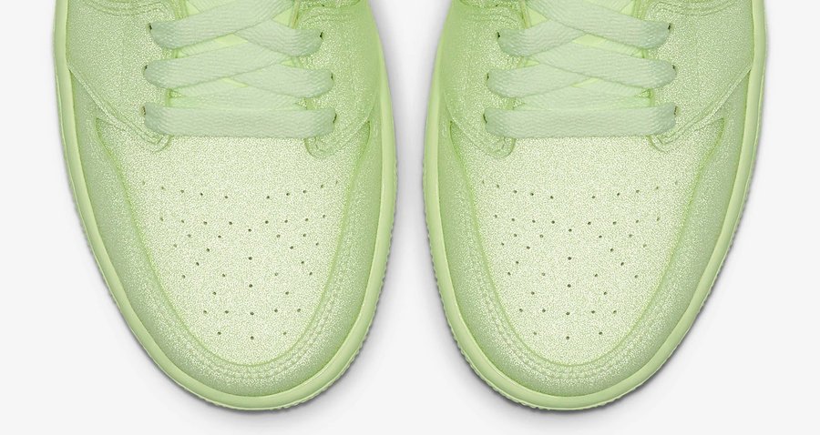 这双鞋以标准的九孔鞋型为蓝本,通体采用荧光绿配色,风格简洁干净。