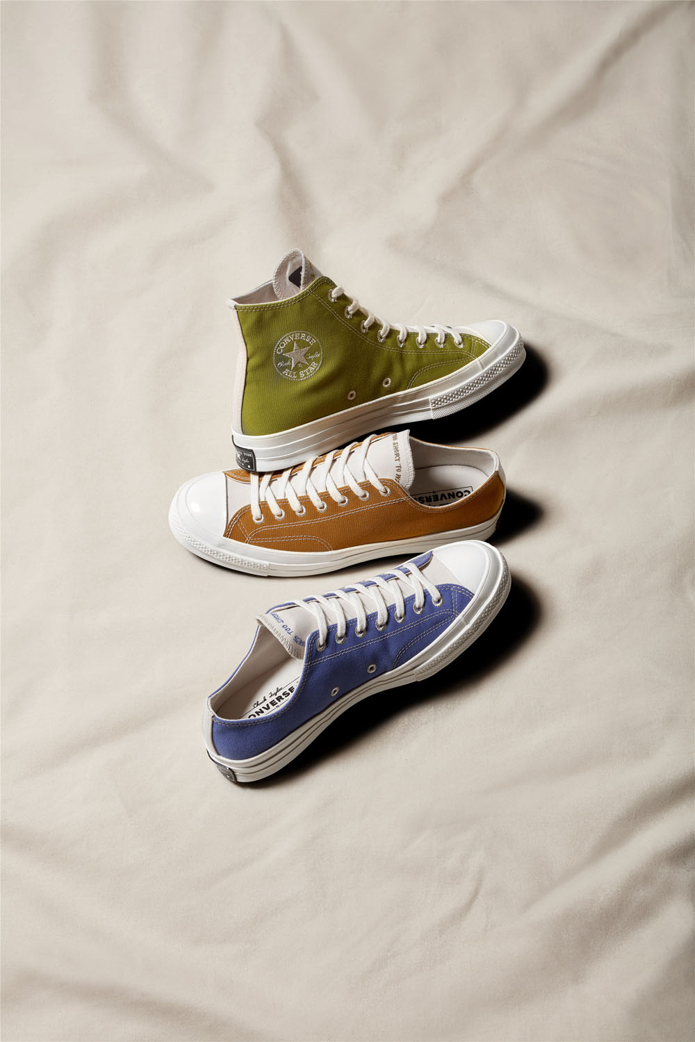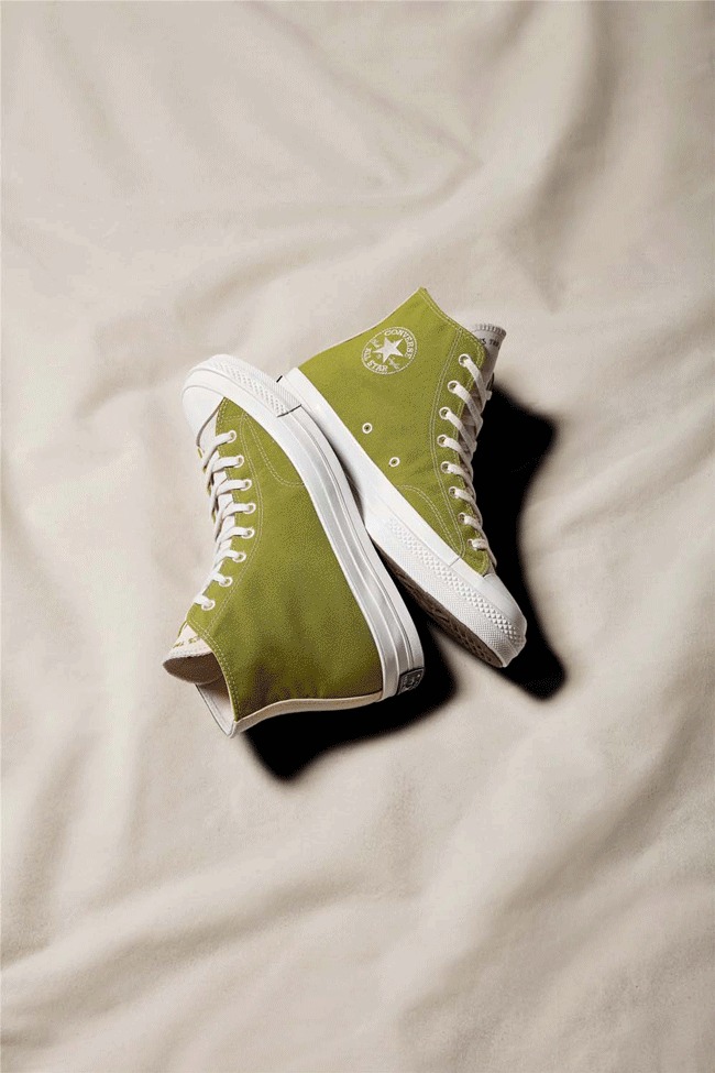 第三大系列 Converse Renew Cotton 的设计理念同样是 “废物再利用”,只不过这次是将 Converse 工厂内的剩余布料再加工。