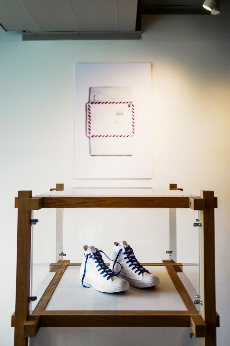 一进大门就能看到上百双 Converse Chuck Taylor 做成的吊灯,透明外底灯光闪耀。