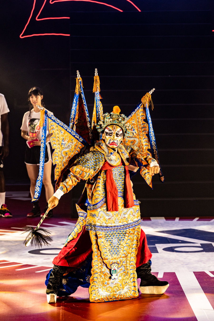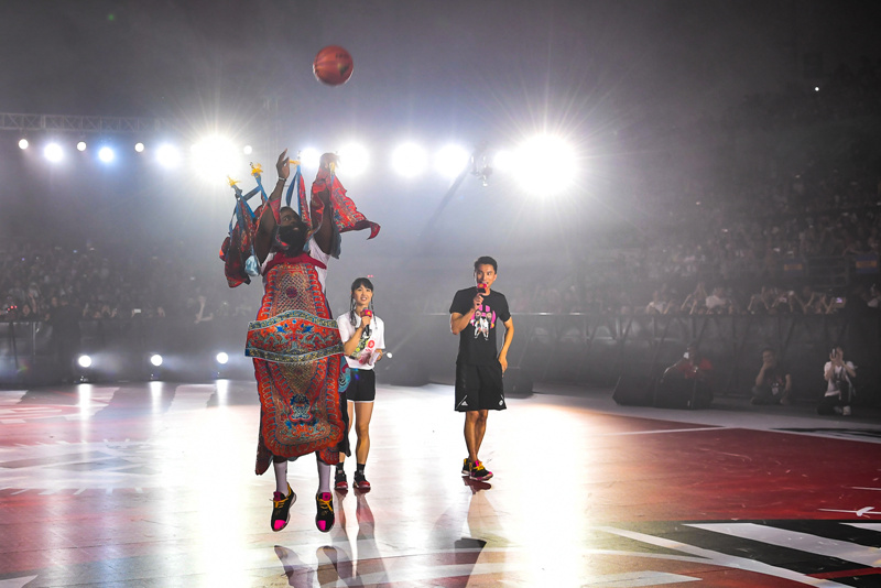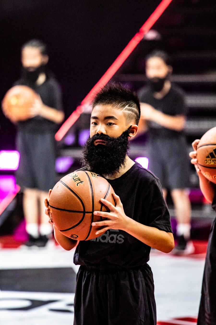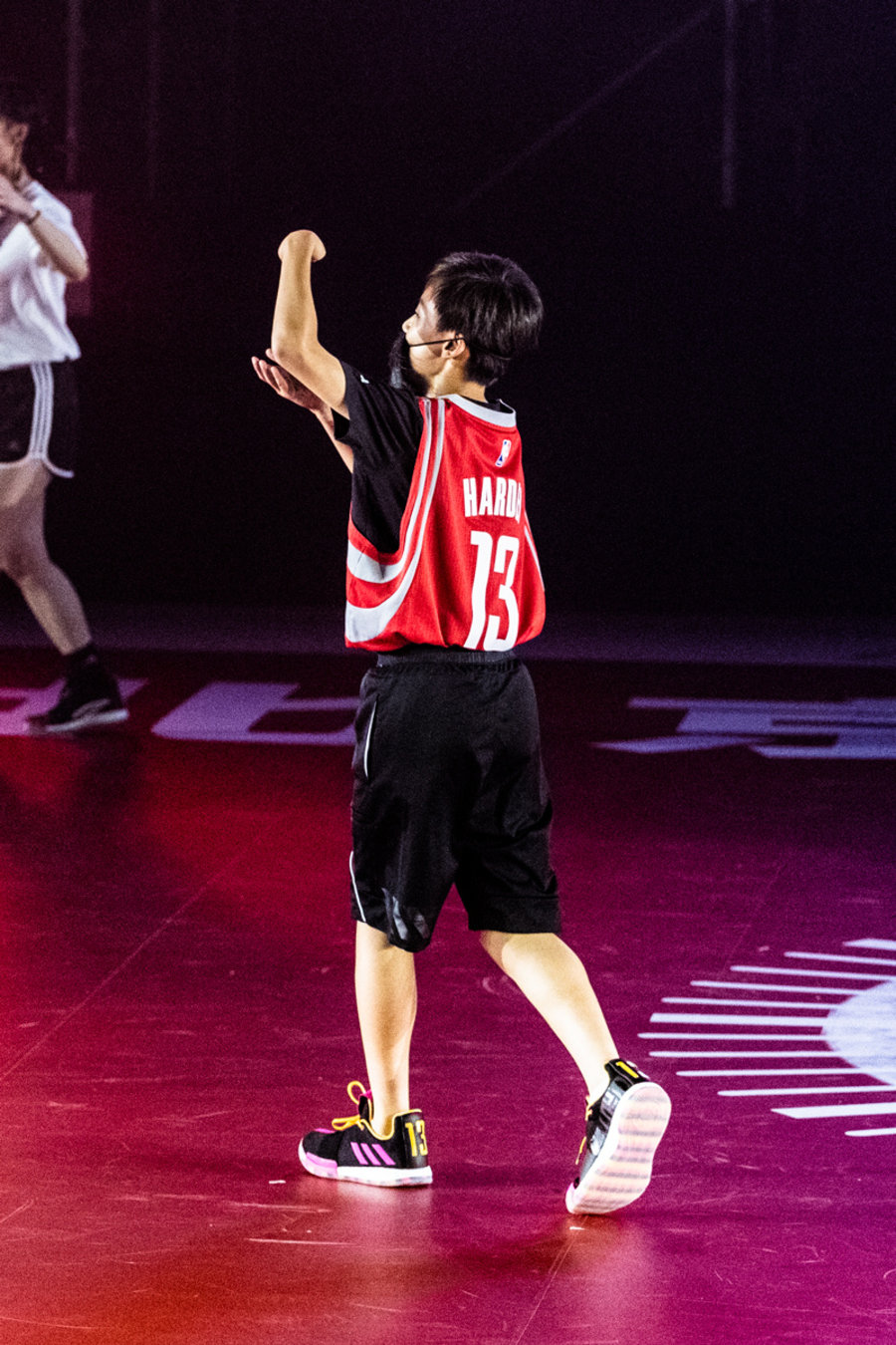 就在「京剧登」亮相暖场后,身着火箭队 13 球衣登场的 “小哈登” 成为了全场的焦点。