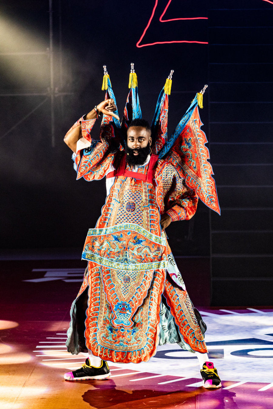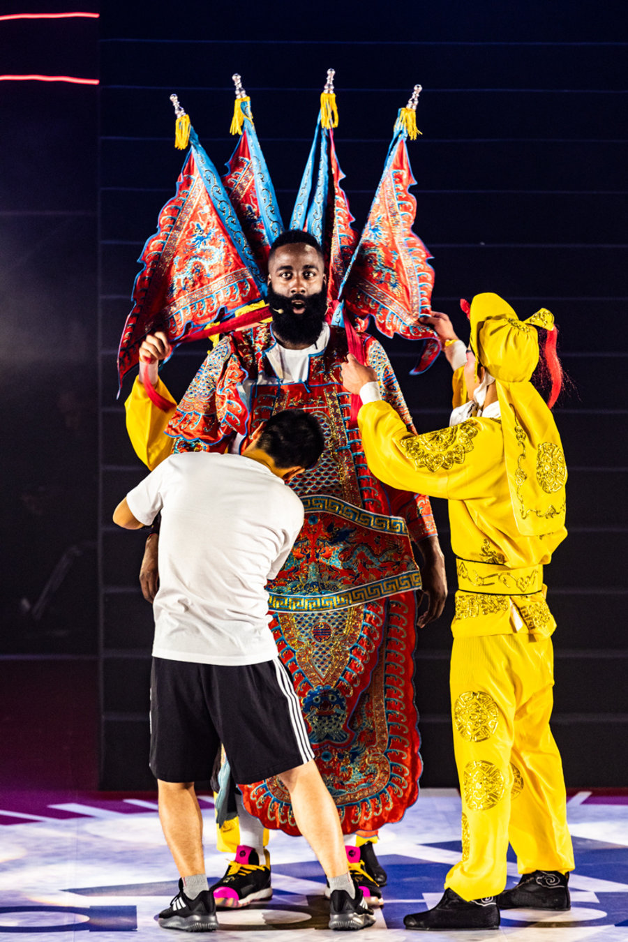 不过要让小编说,北京站全场最有意思的瞬间,当属换上京剧服装的詹姆斯·哈登。
