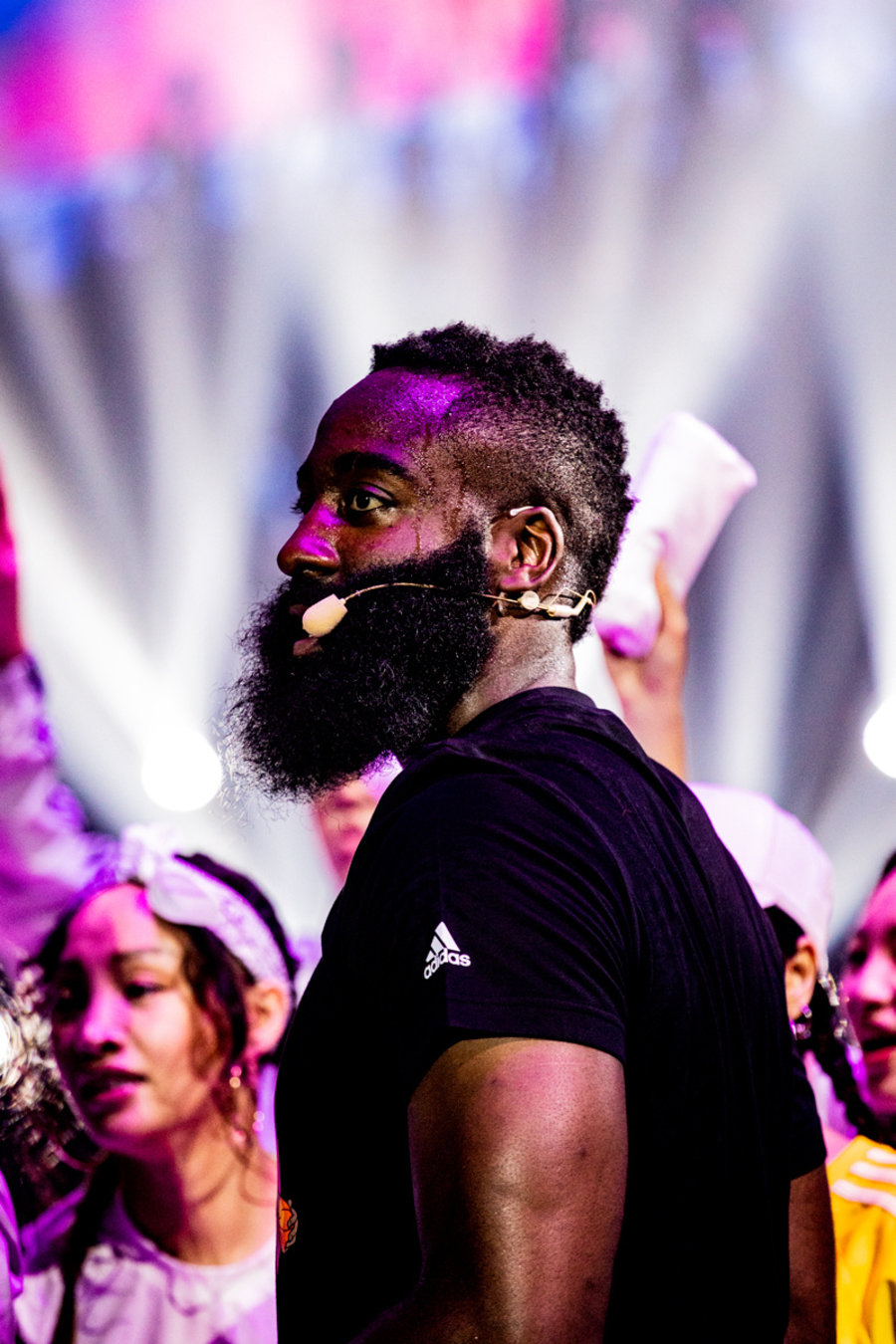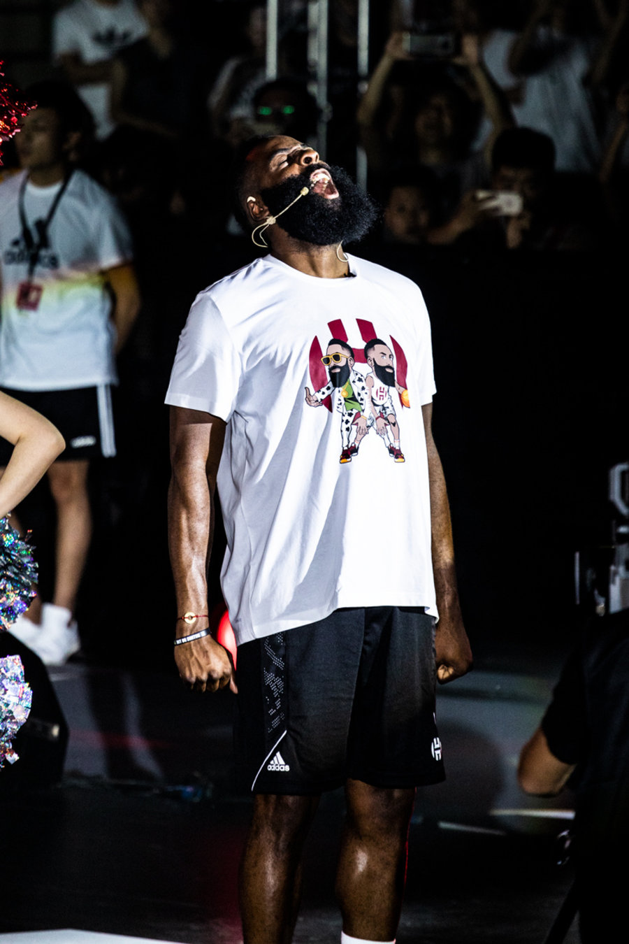两位知名相声演员令人捧腹大笑的开场秀后,哈登伴随着全场的尖叫与 MVP 呼声登场。