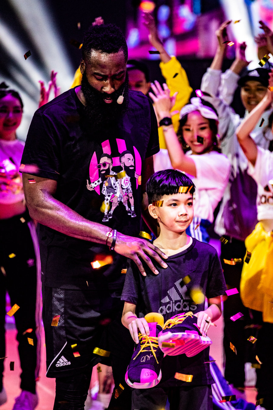 整场活动最让人感动的是,在活动临近结束时,哈登并没有忘记此前对小朋友的承诺。
