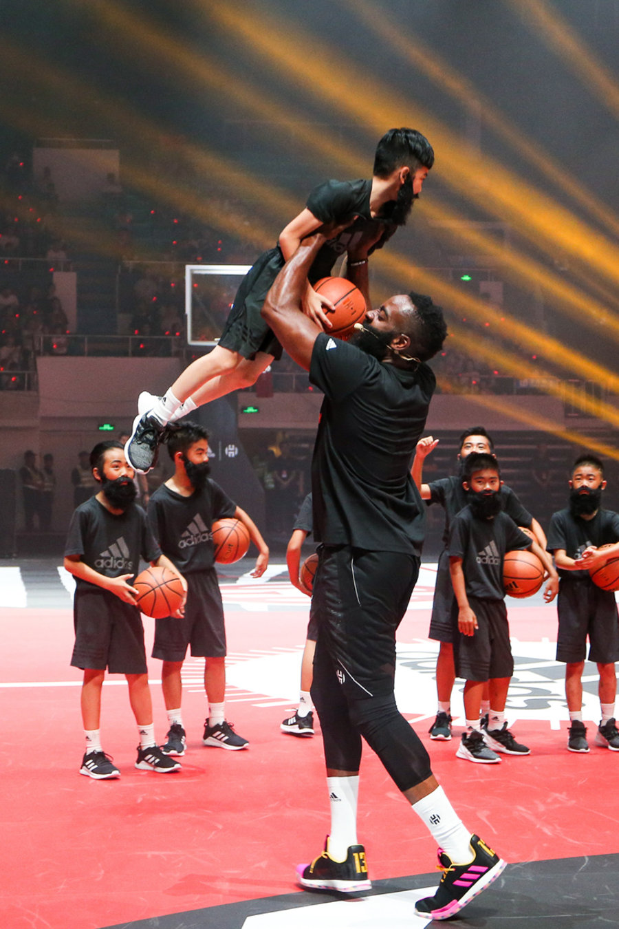 哈登似乎也被这二十位小朋友激起了兴致。