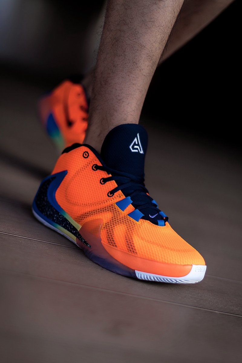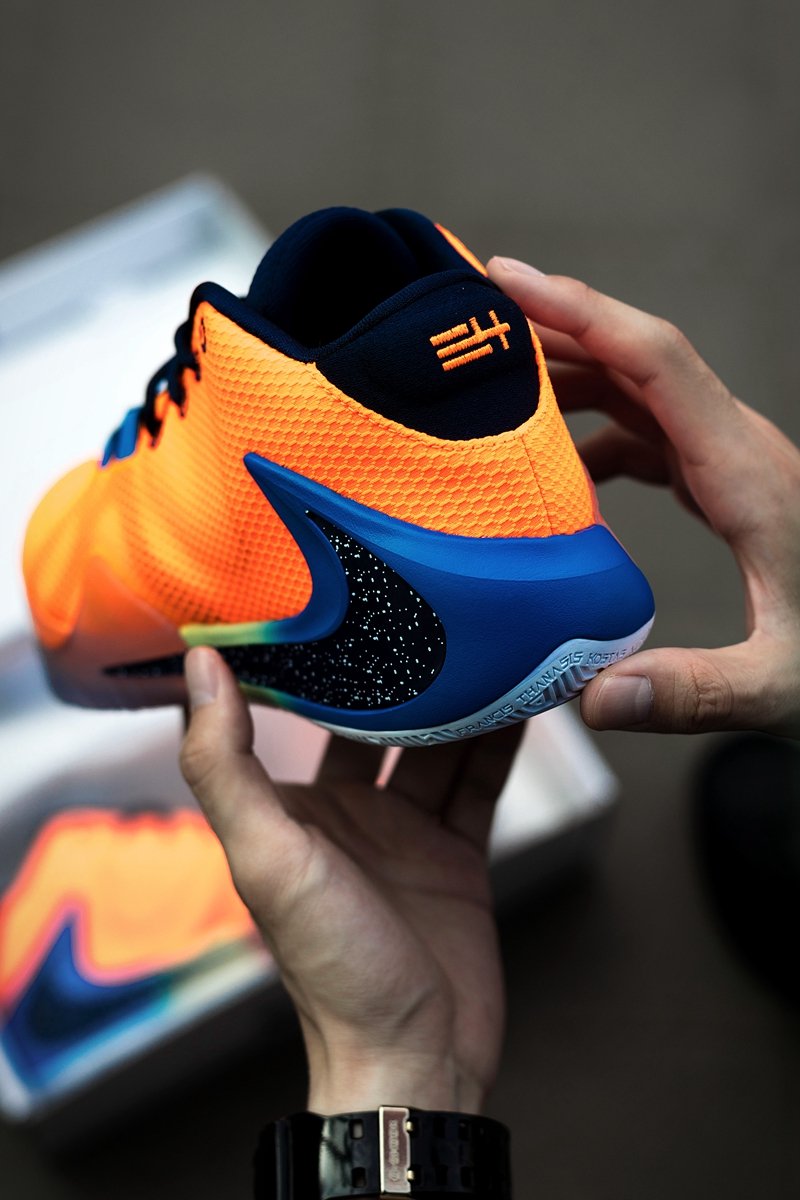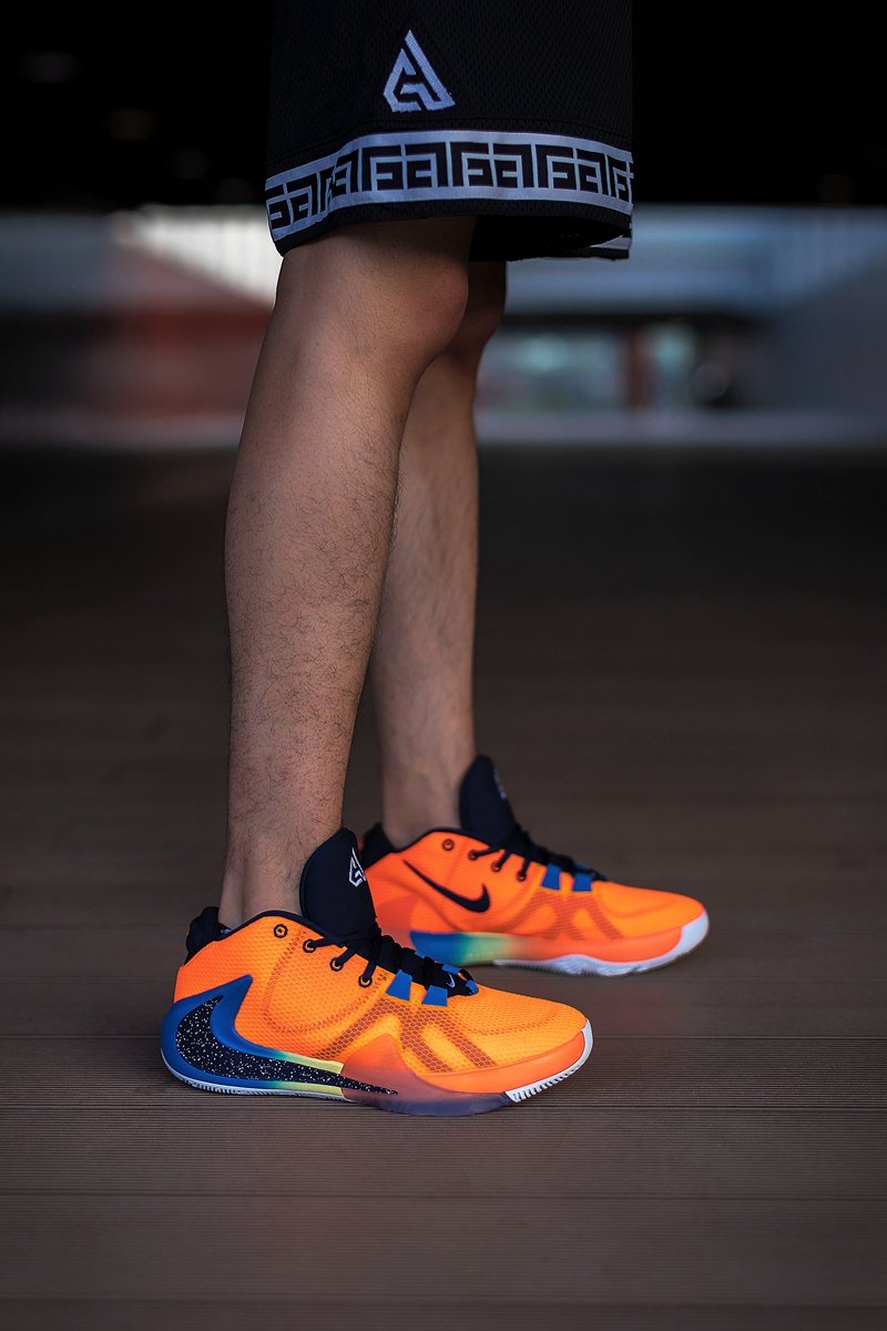 国内首发配色 Nike Zoom Freak 1 “All Bros”以字母哥兄弟四人为灵感,采用醒目橙色鞋面搭配彩虹渐变中底的泼墨反钩呈现!