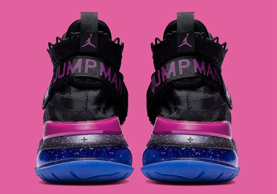 鞋身采用大面积的尼龙材质覆盖,后跟绑带外加魔术贴的设计增加机能感,并印有醒目的 “JUMPMAN” 字样,同时鞋身侧面以线条展现飞翼 Logo 的设计也别出心裁。