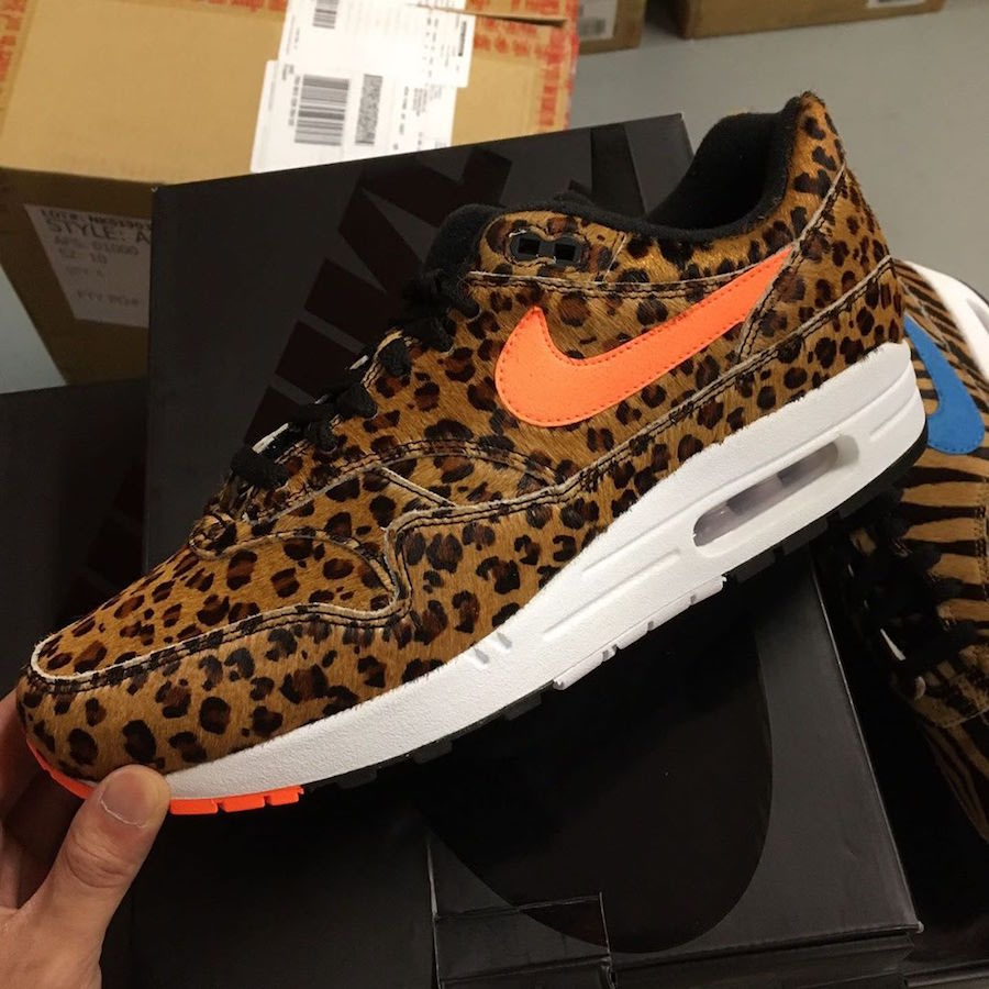 此次依旧为兽纹马鬃毛打造,不过并没有在一双鞋上拼接多种兽纹,而是将三种兽纹分别应用在三款配色上,并在外底、Swoosh 及后跟以彩色点缀。