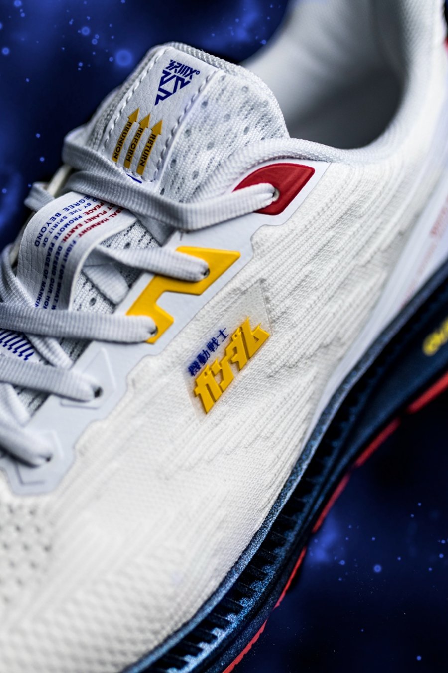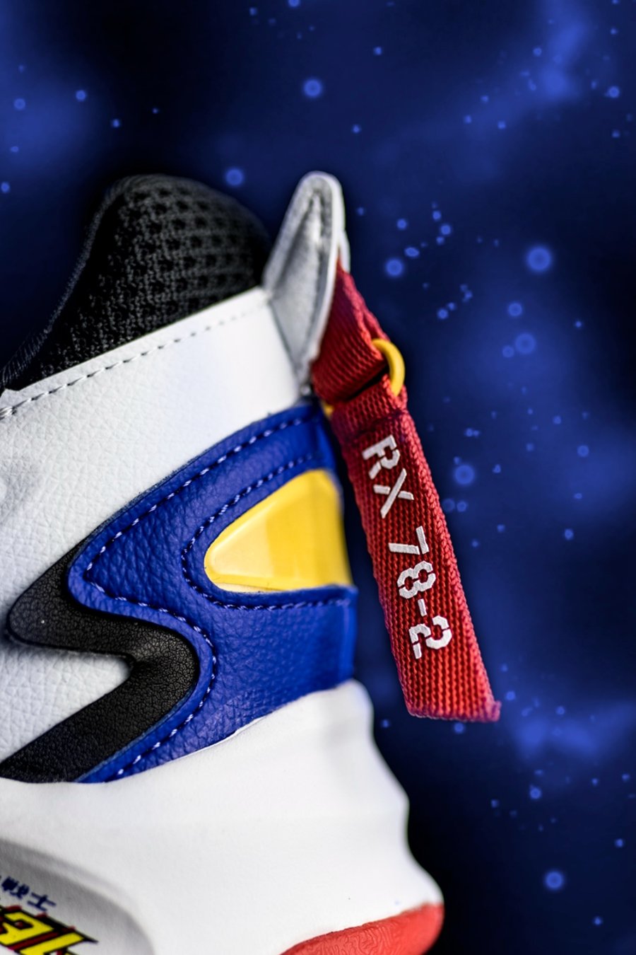后跟织带印有 RX-78-2 字样,中底还印有《机动战士高达》的日文 Logo,彰显联名主题。